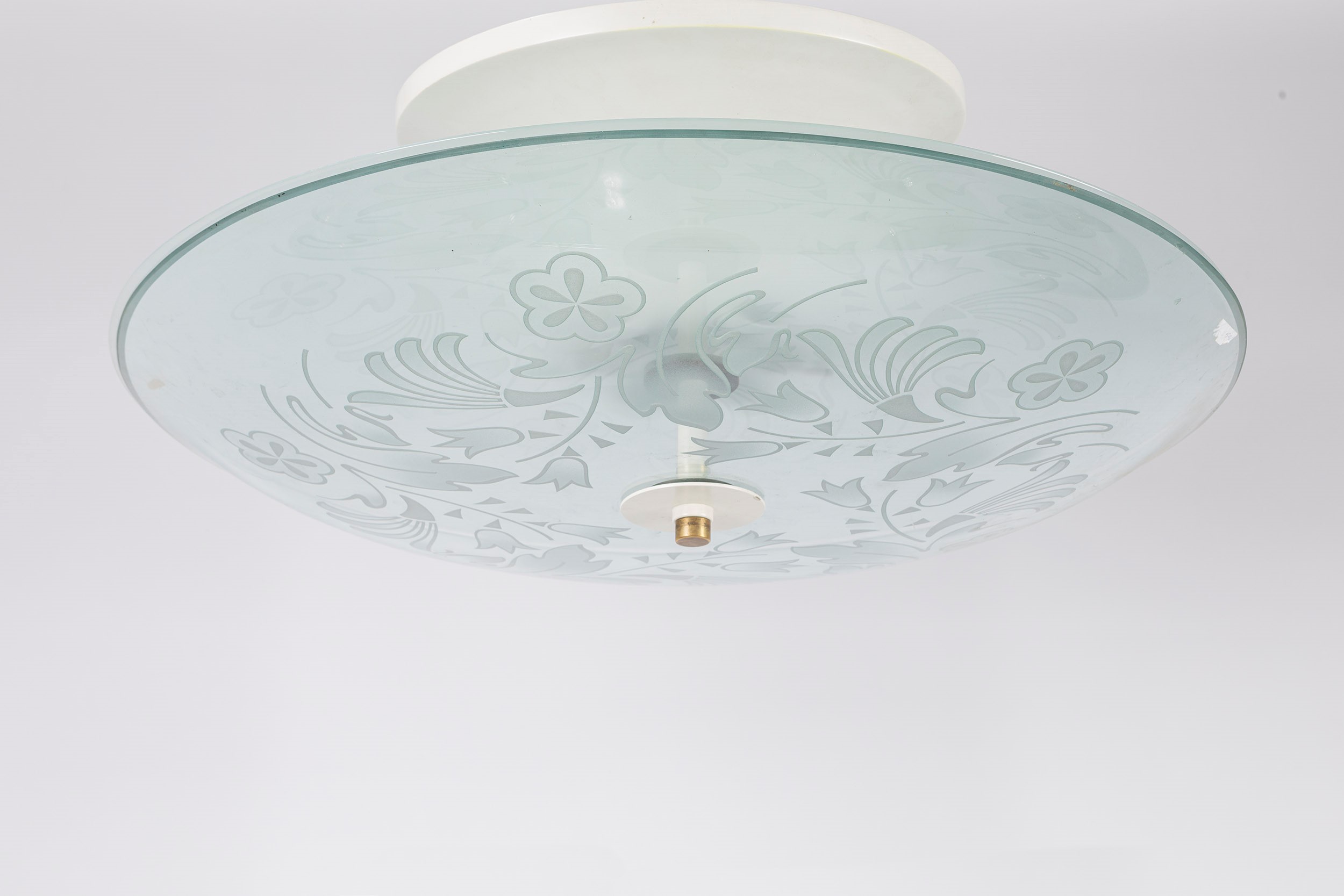 1940 ca. Con calotta in vetro inciso alla mola a motivi floreali. Vetro satinato.