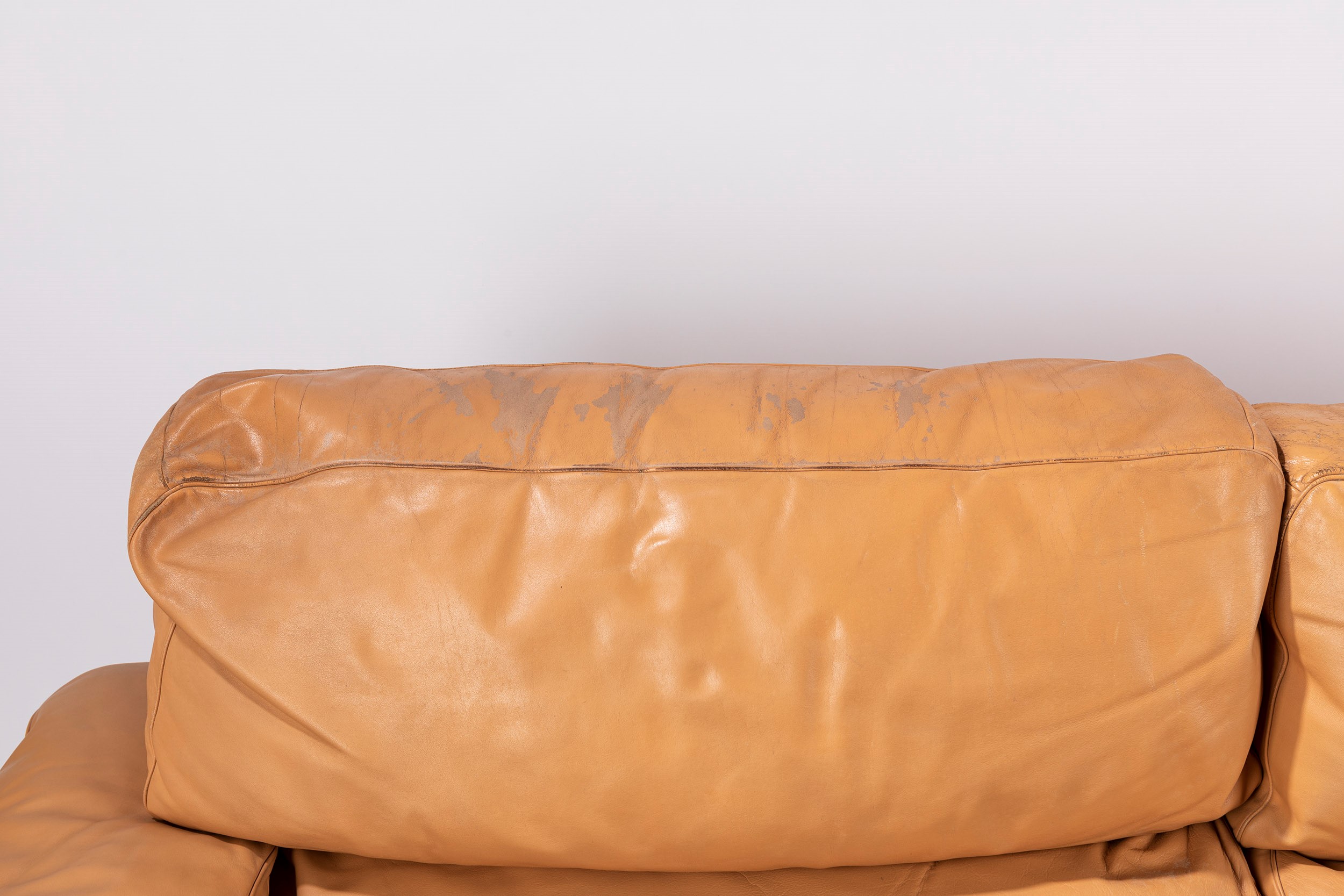 1970 ca. Divano in pelle color senape. Piedi in legno.