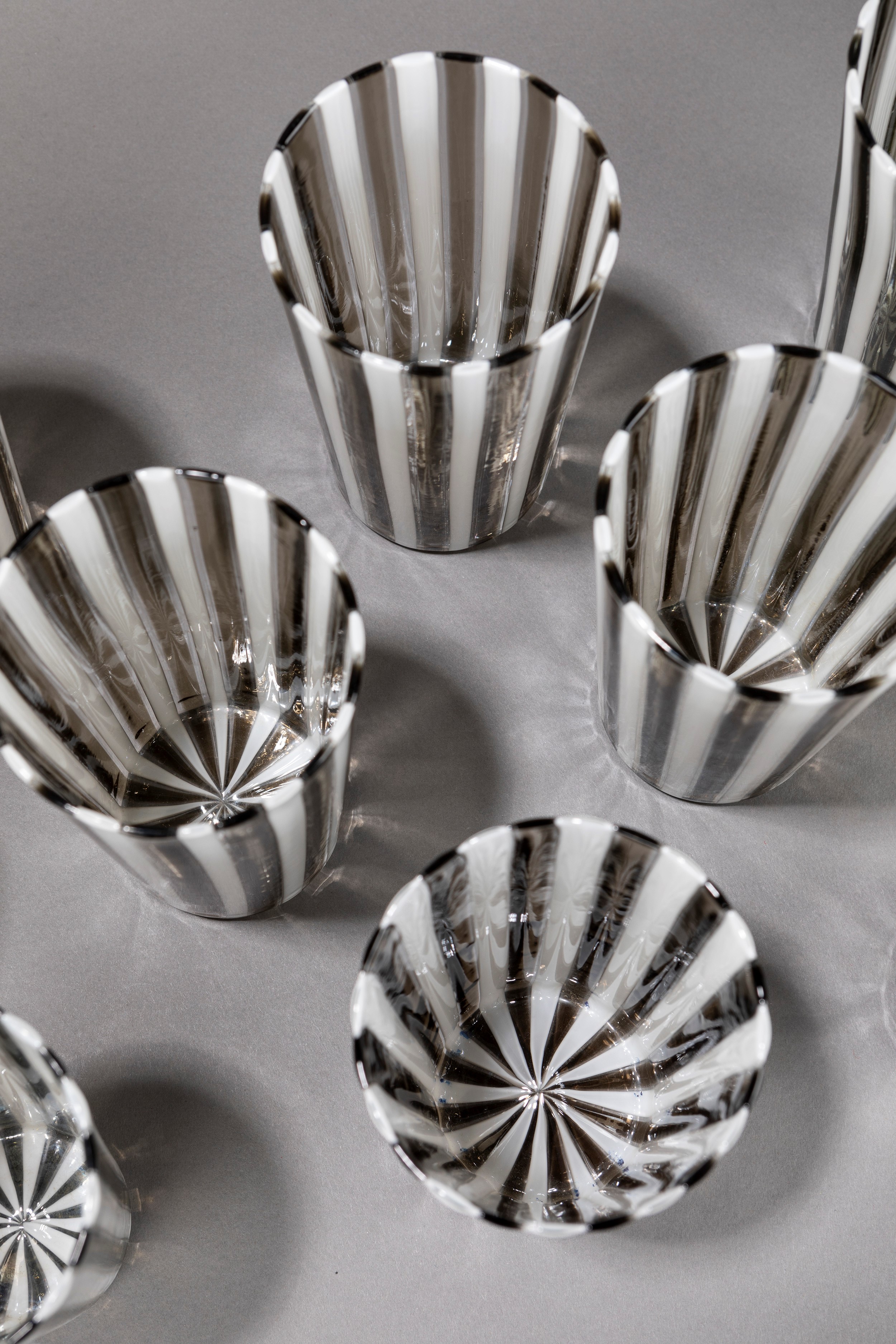 Vetro soffiato a canne verticali bianche e grigie. Firma Venini Italia.