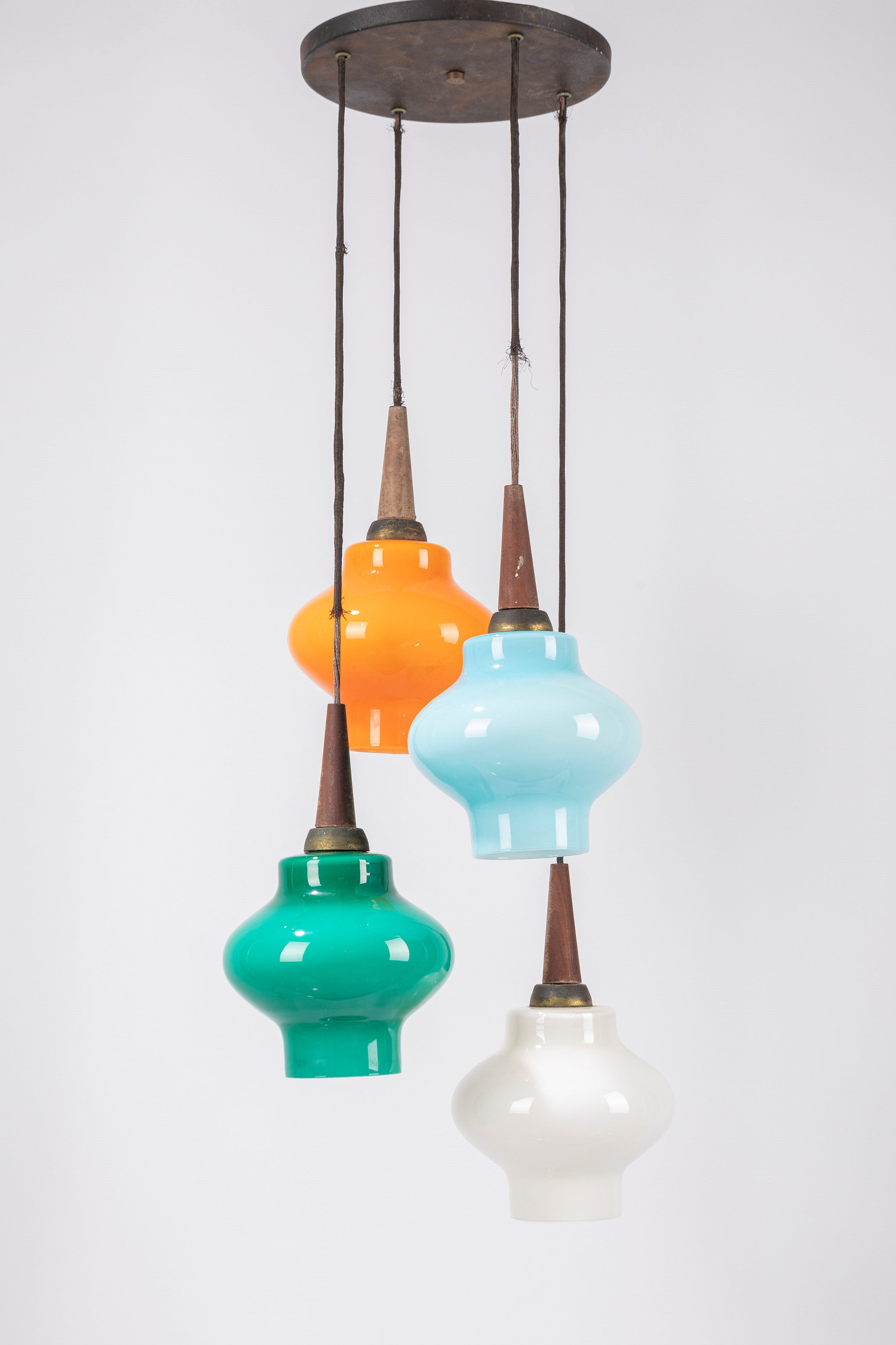 a quattro luci in vetro colorato incamiciato. Struttura in metallo.