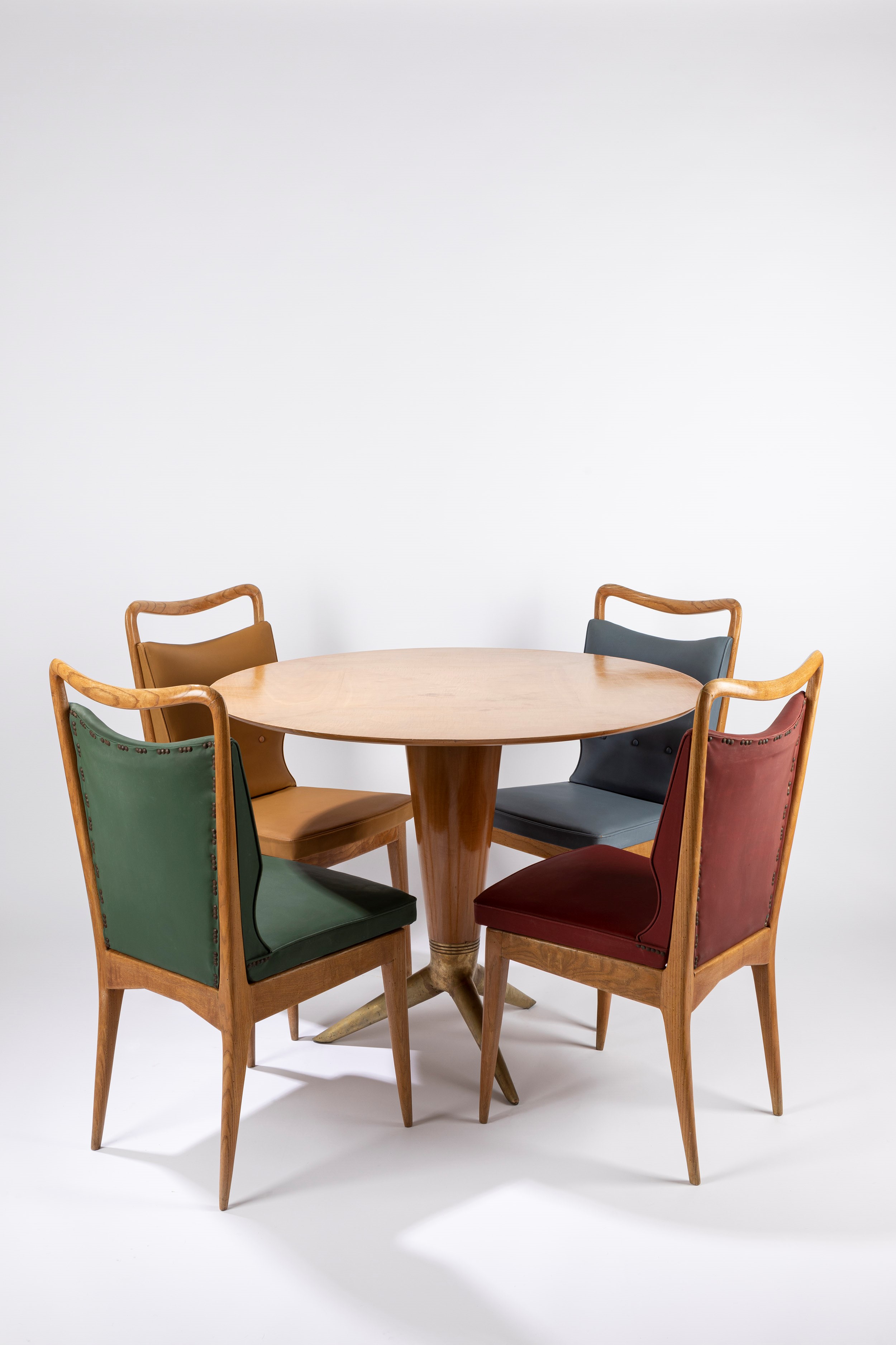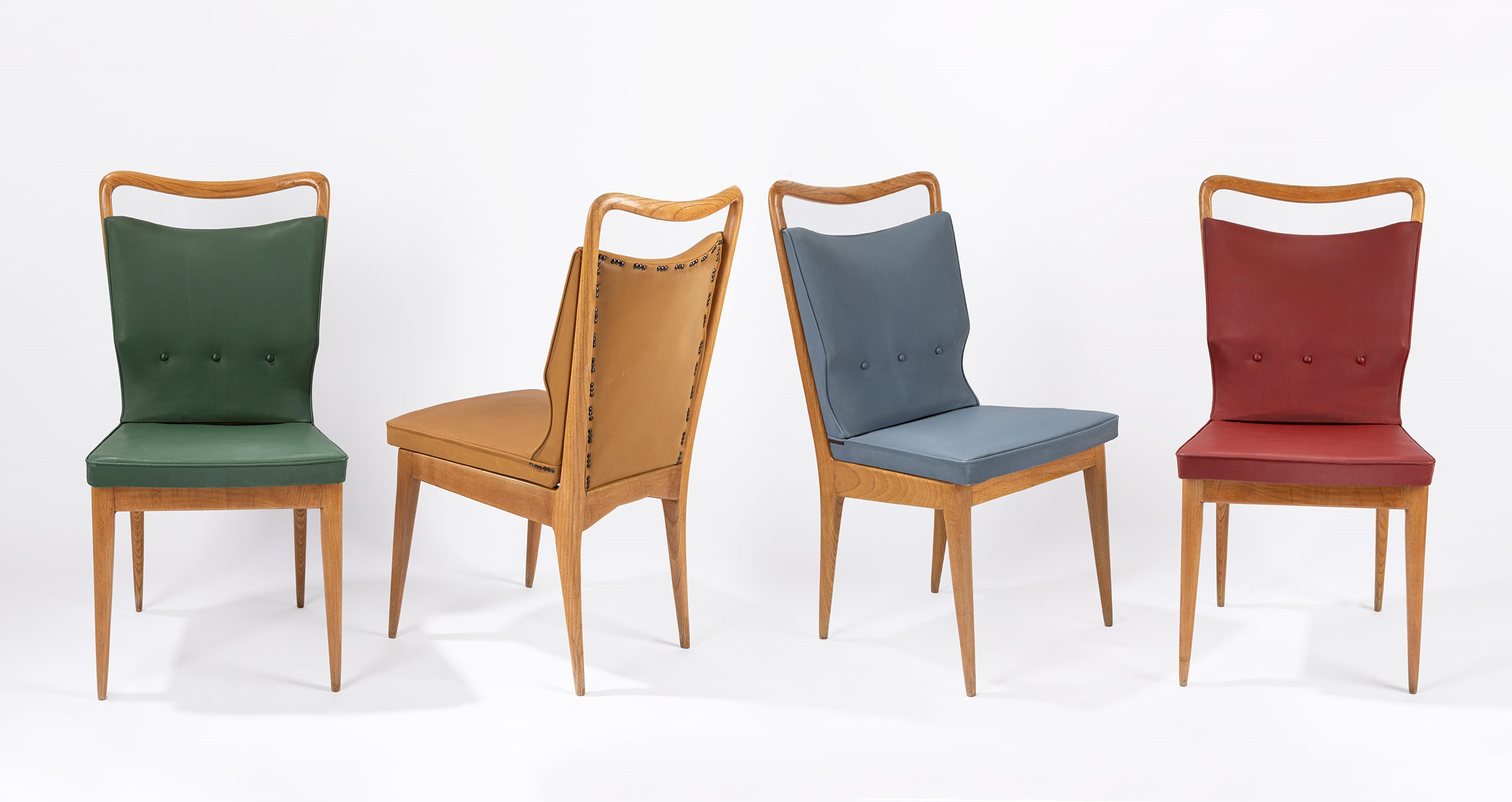 Seduta e schienale delle sedie in simil pelle di vari colori.
