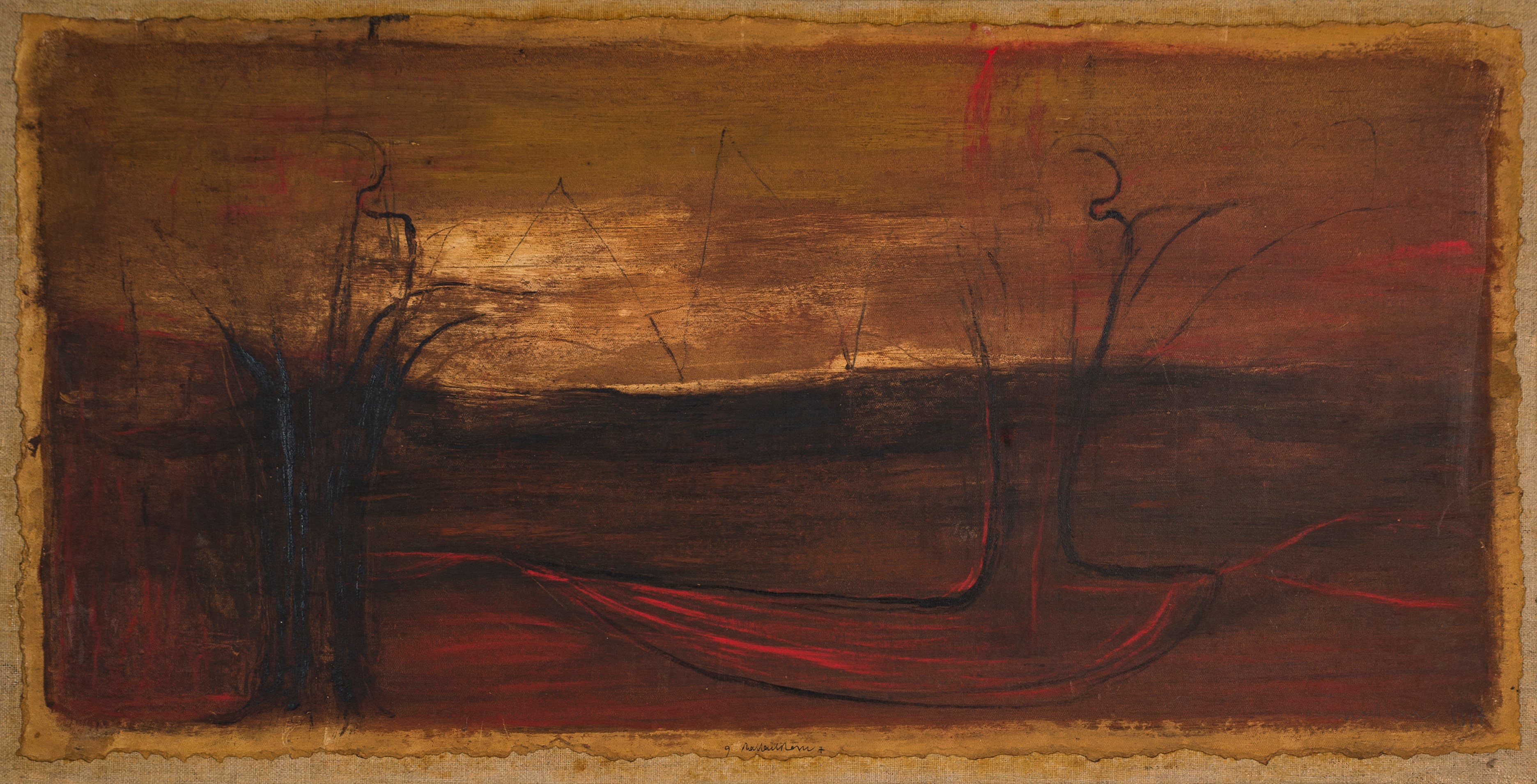 tecnica mista su cartoncino riportato su tela, cm. 53x103