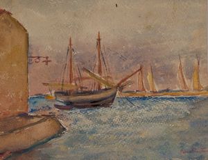tecnica mista su carta, cm. 48x36 1956 firma e data in basso a destra