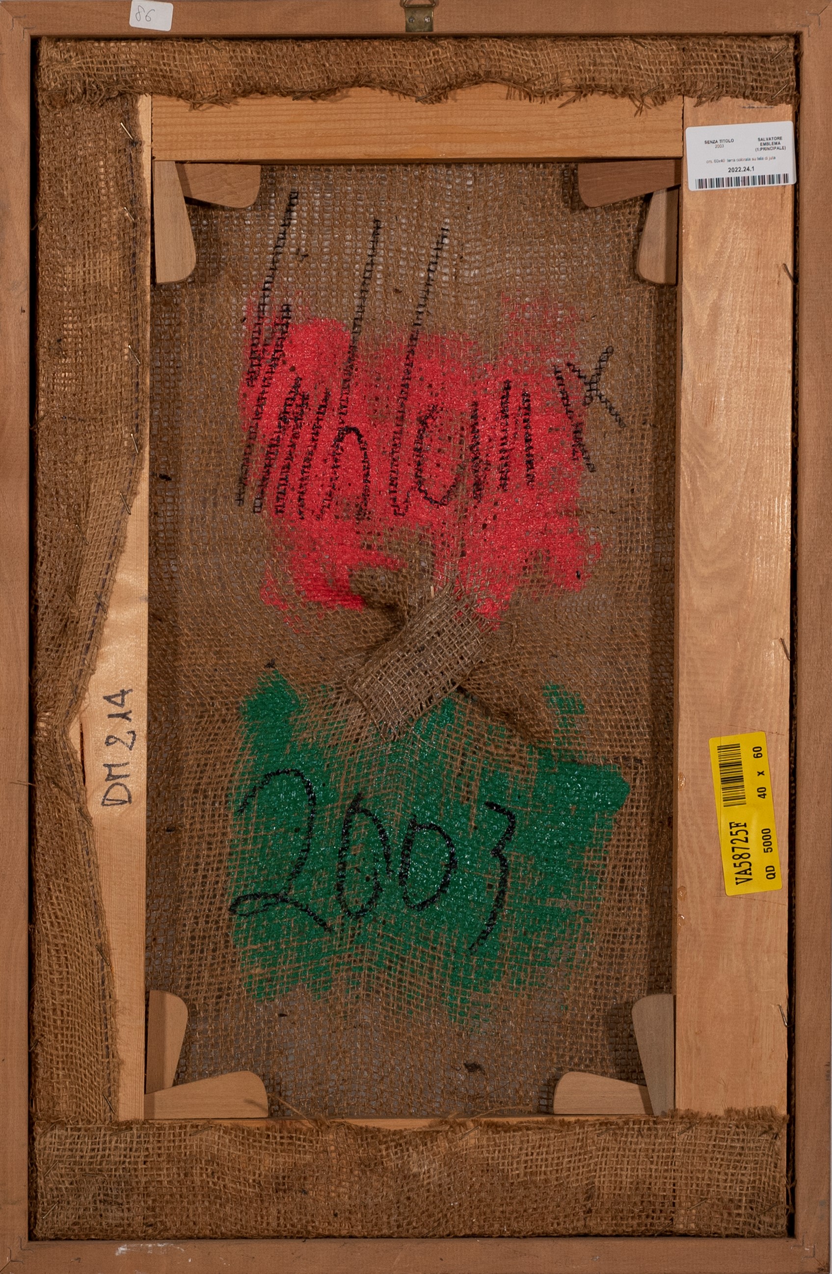 terra colorata su tela di juta, cm. 60x40