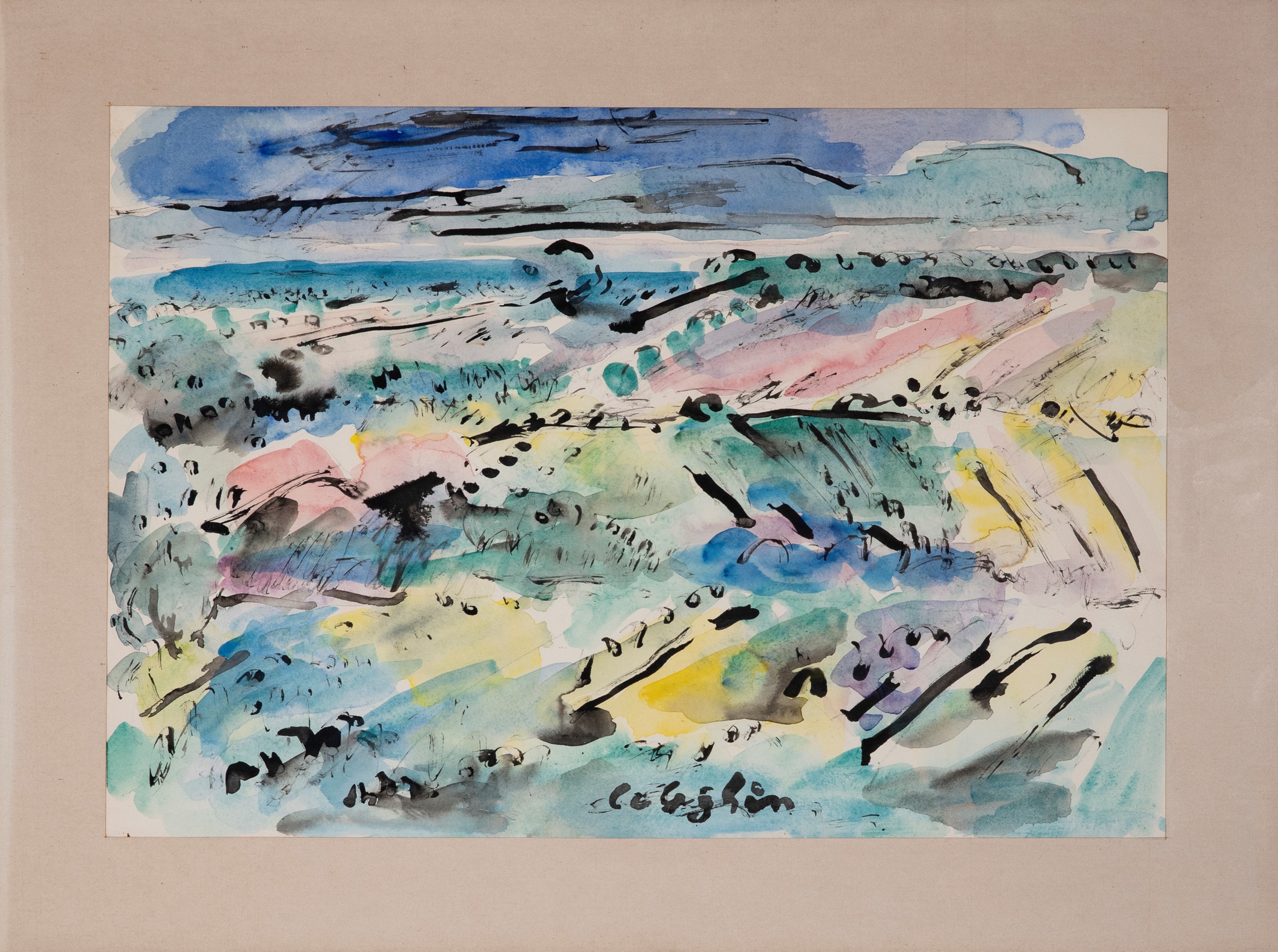 lotto di 1 olio su tela e 1 acquerello su carta, cm. 53x63 - 35x50