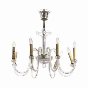Lampadario a otto luci con pendenti in vetro e ametista, XIX-XX secolo