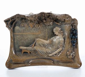 Coppia di ciotole in metallo argentato con grappoli d’uva, inizi XX secolo