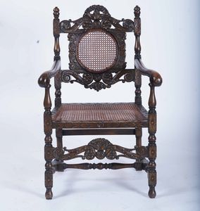 Poltrona in legno intagliato, Francia, stile Luigi XIII