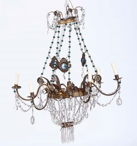 Lampadario in metallo e cristalli. XIX secolo