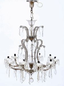 Lampadario a dieci luci in vetro con pendenti. XIX-XX secolo