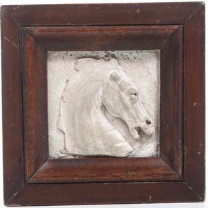 Piccolo rilievo in gesso raffigurante cavallo entro cornice. Fine XIX secolo