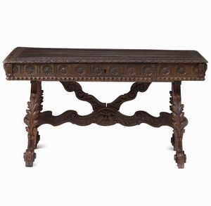 Tavolo in legno intagliato, fine XIX secolo