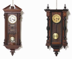 Lotto di due orologi da parete in legno, inizio XX secolo