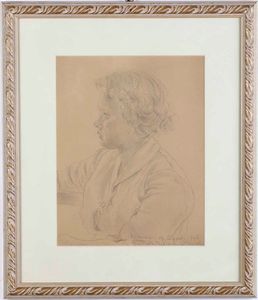 Disegno a matita su carta raffigurante fanciulla di profilo, 1946