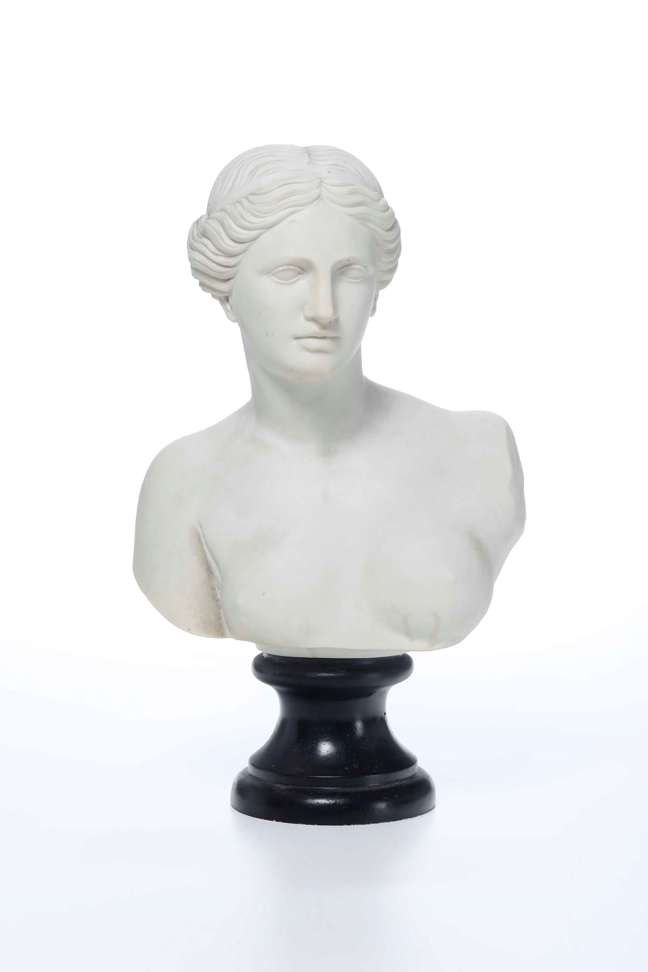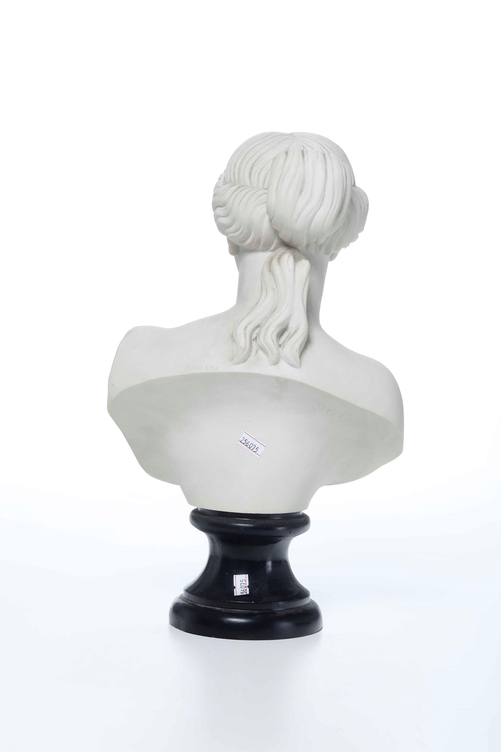 Busto femminile in biscuit su base in legno tornito