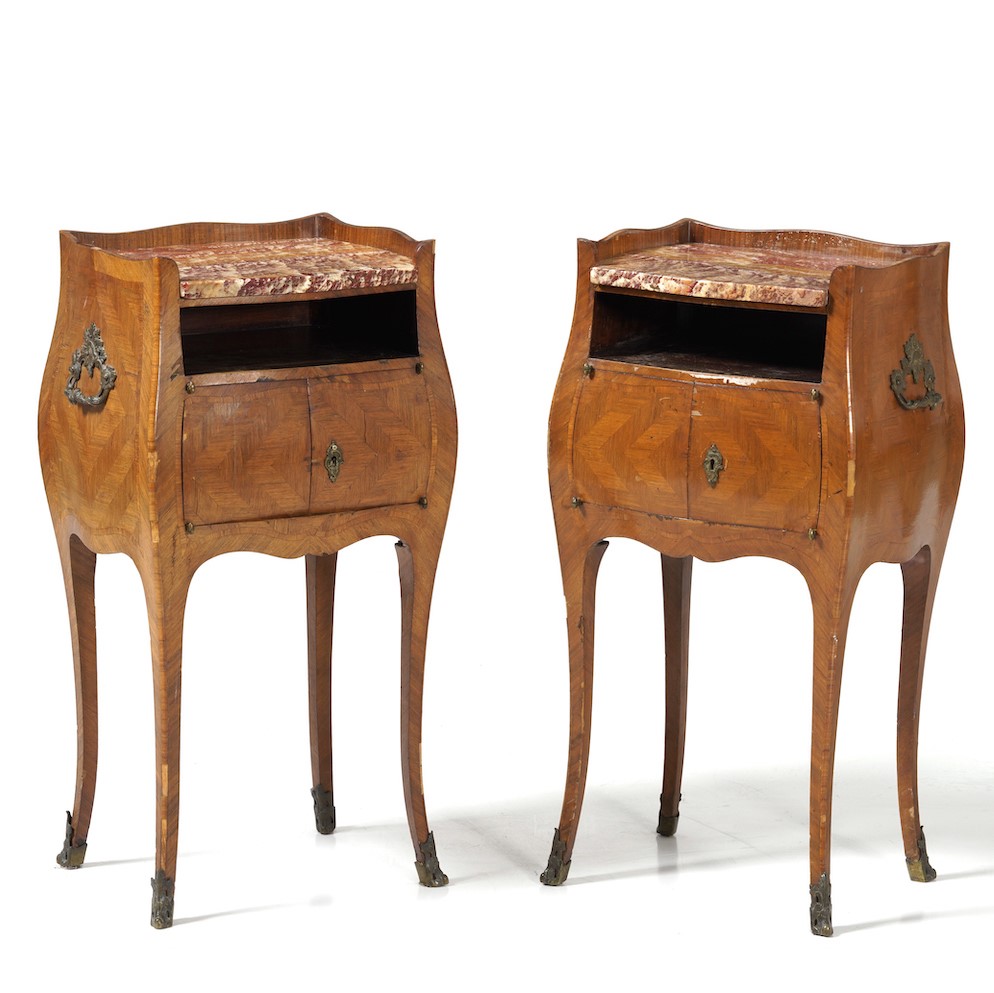 Coppia di comodini lastronati, in stile