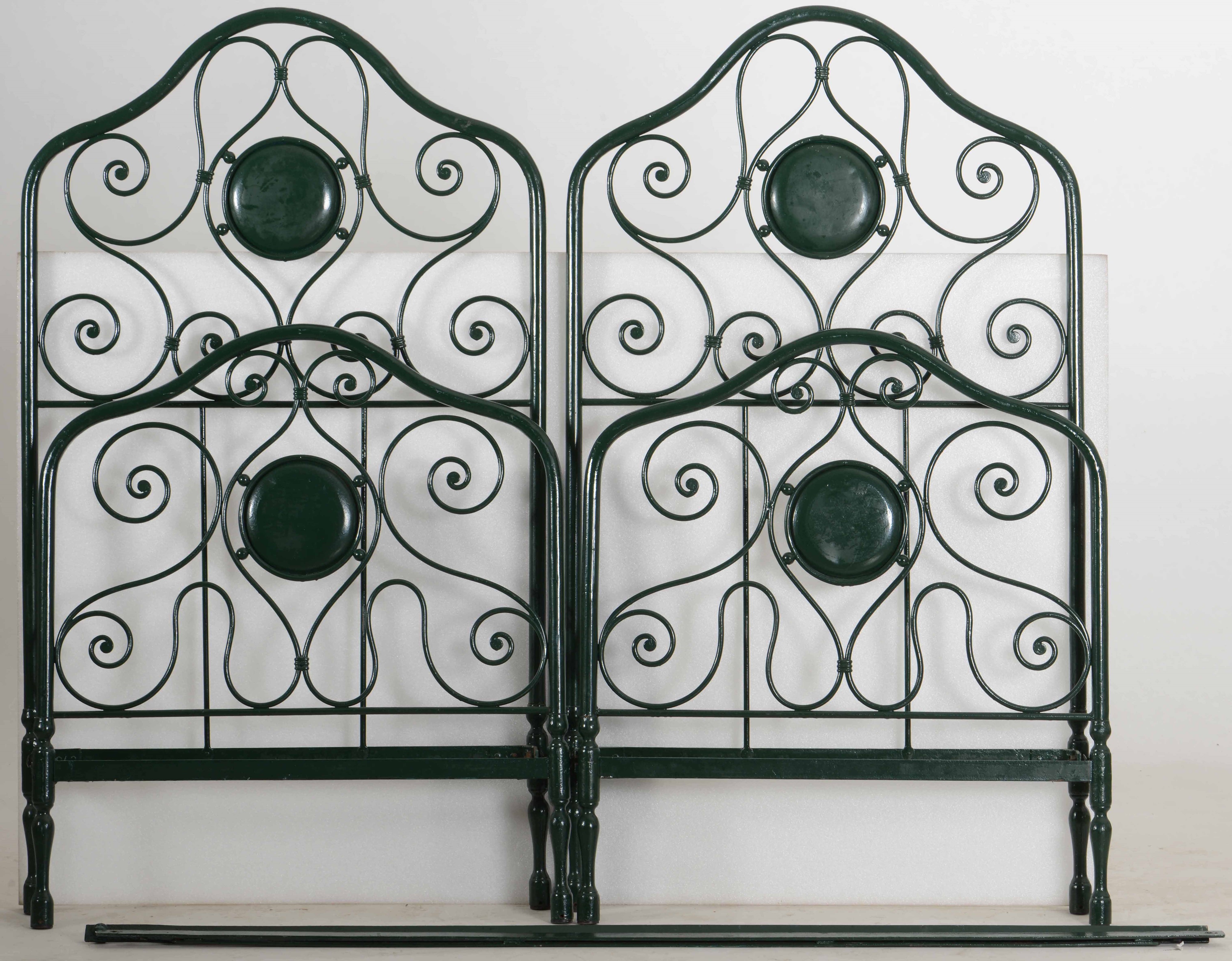 Coppia di lettini in ferro battuto e dipinti in verde. XIX secolo