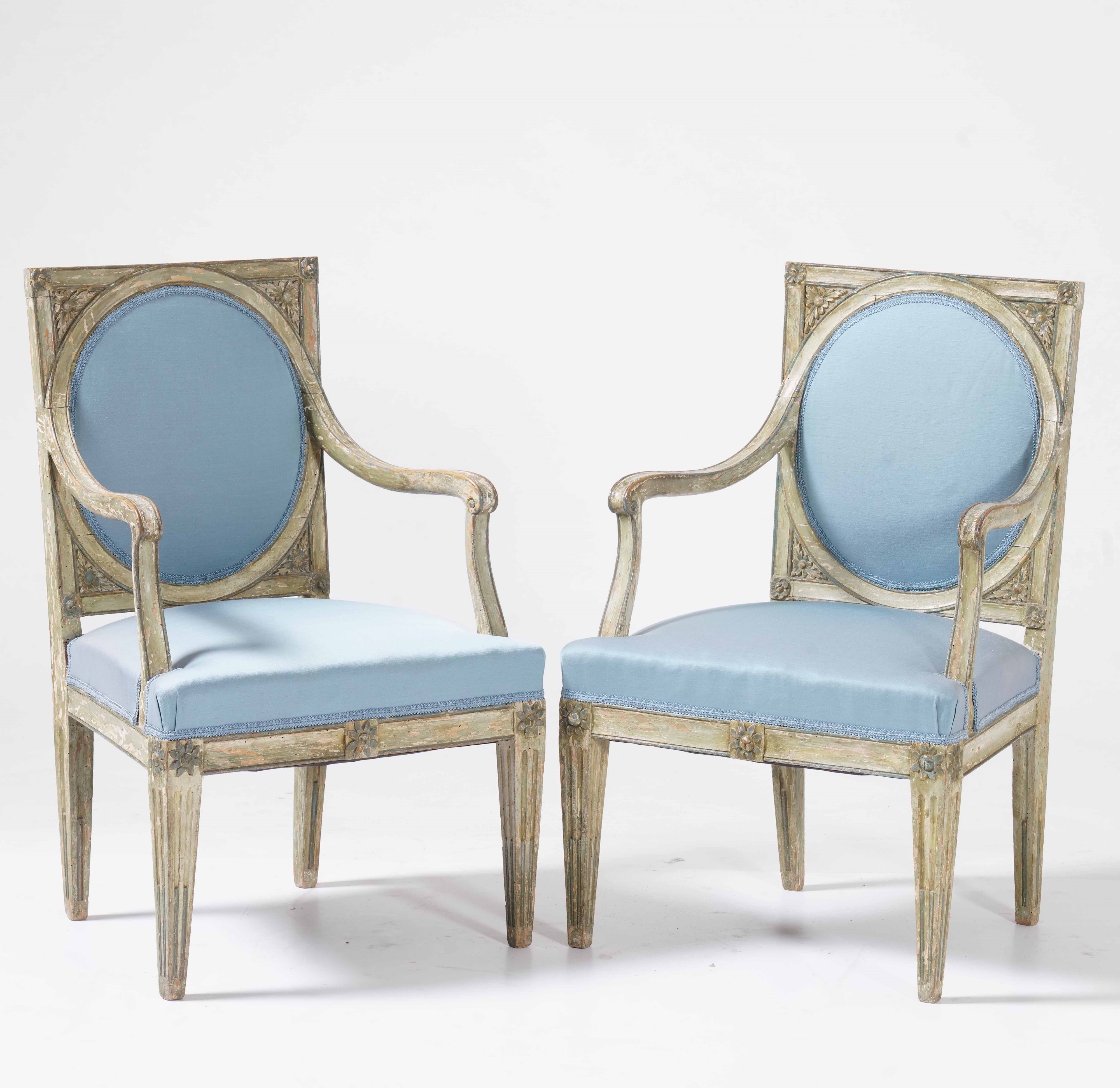 Coppia di poltrone in legno laccato. XIX secolo