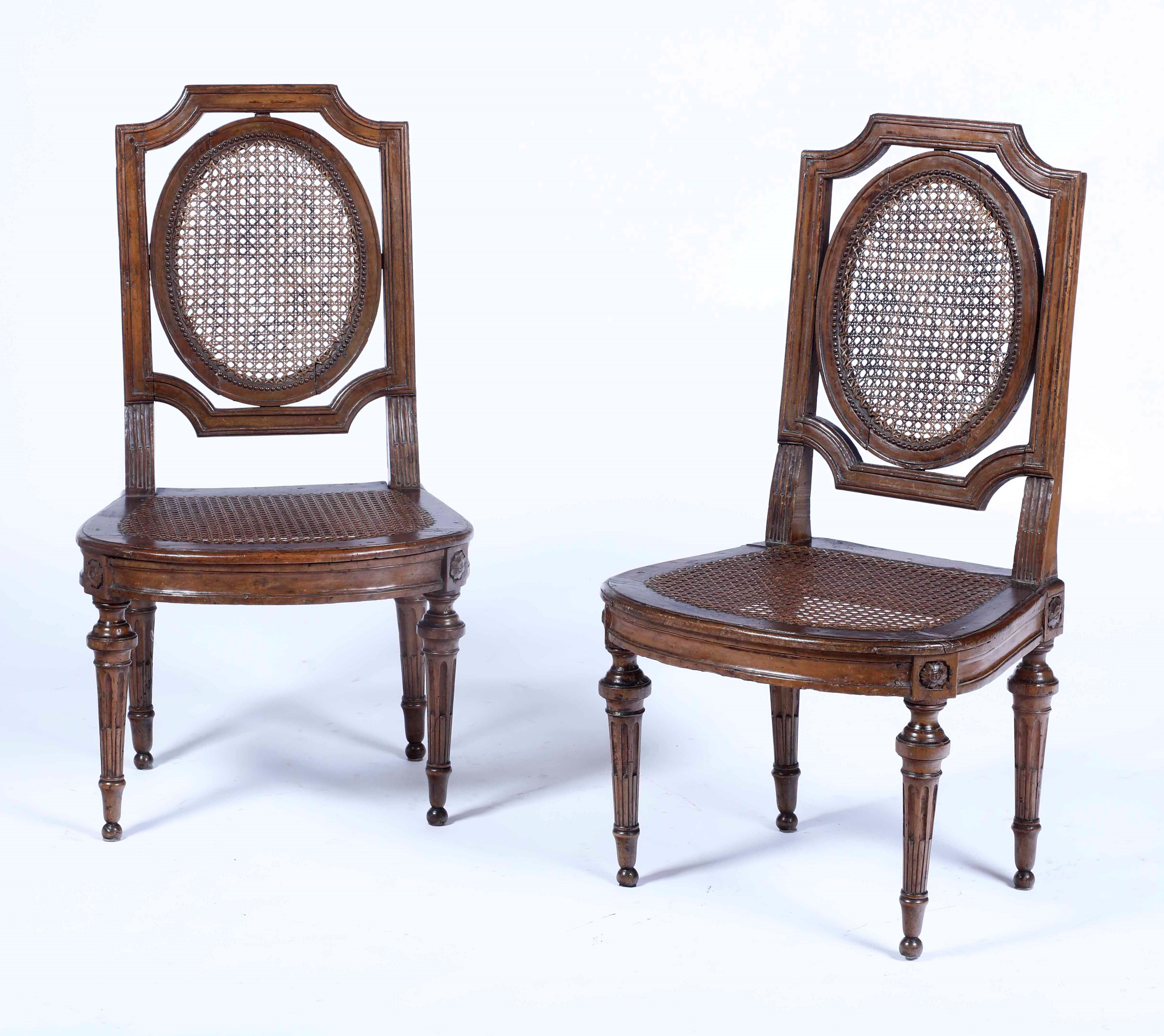 Coppia di poltrone Luigi XVI in noce