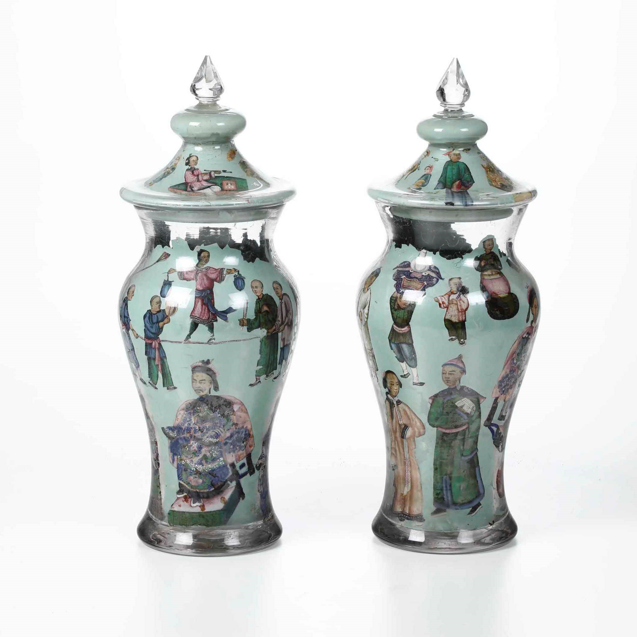 Coppia di vasi in vetro con decalcomania, Piemonte, fine XVIII, inizi XIX secolo [..]