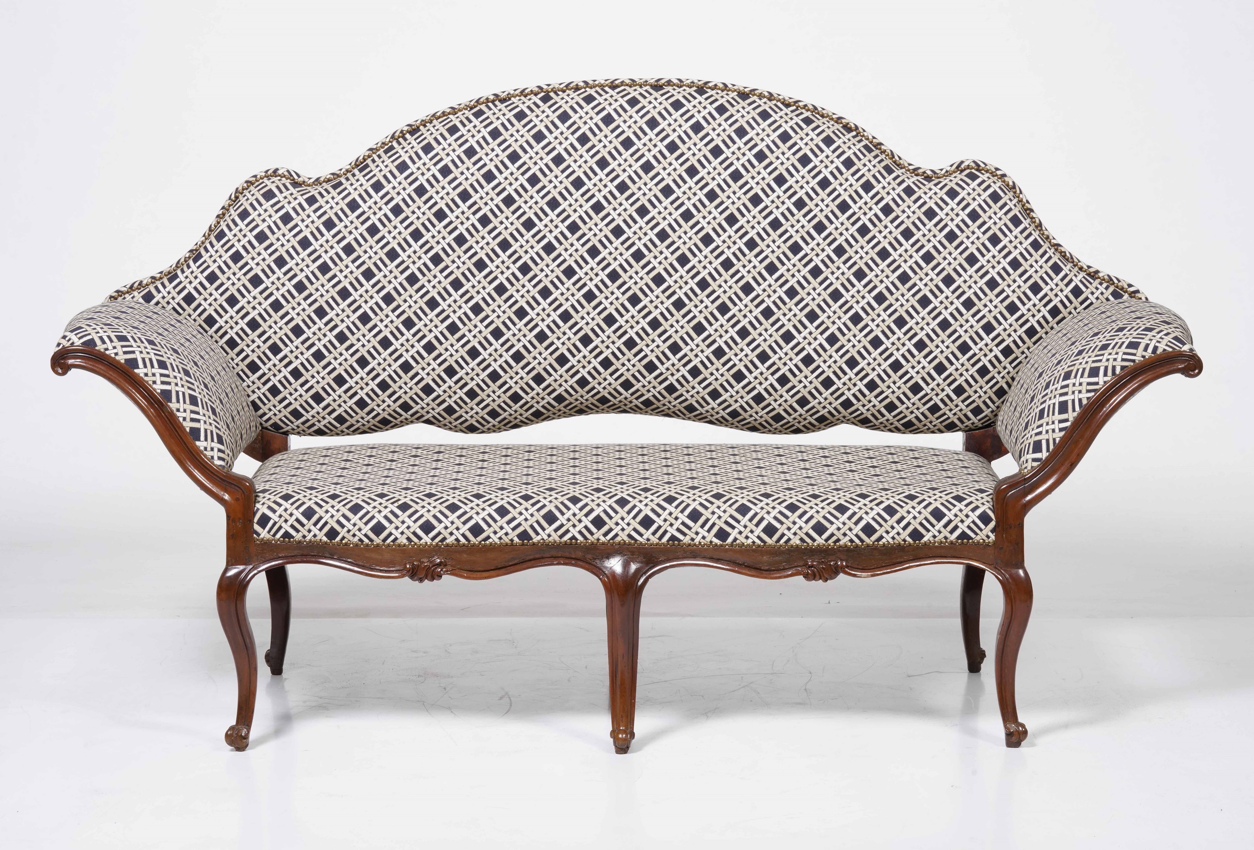 Divano Luigi XV in noce intagliato. Piemonte, XVIII secolo