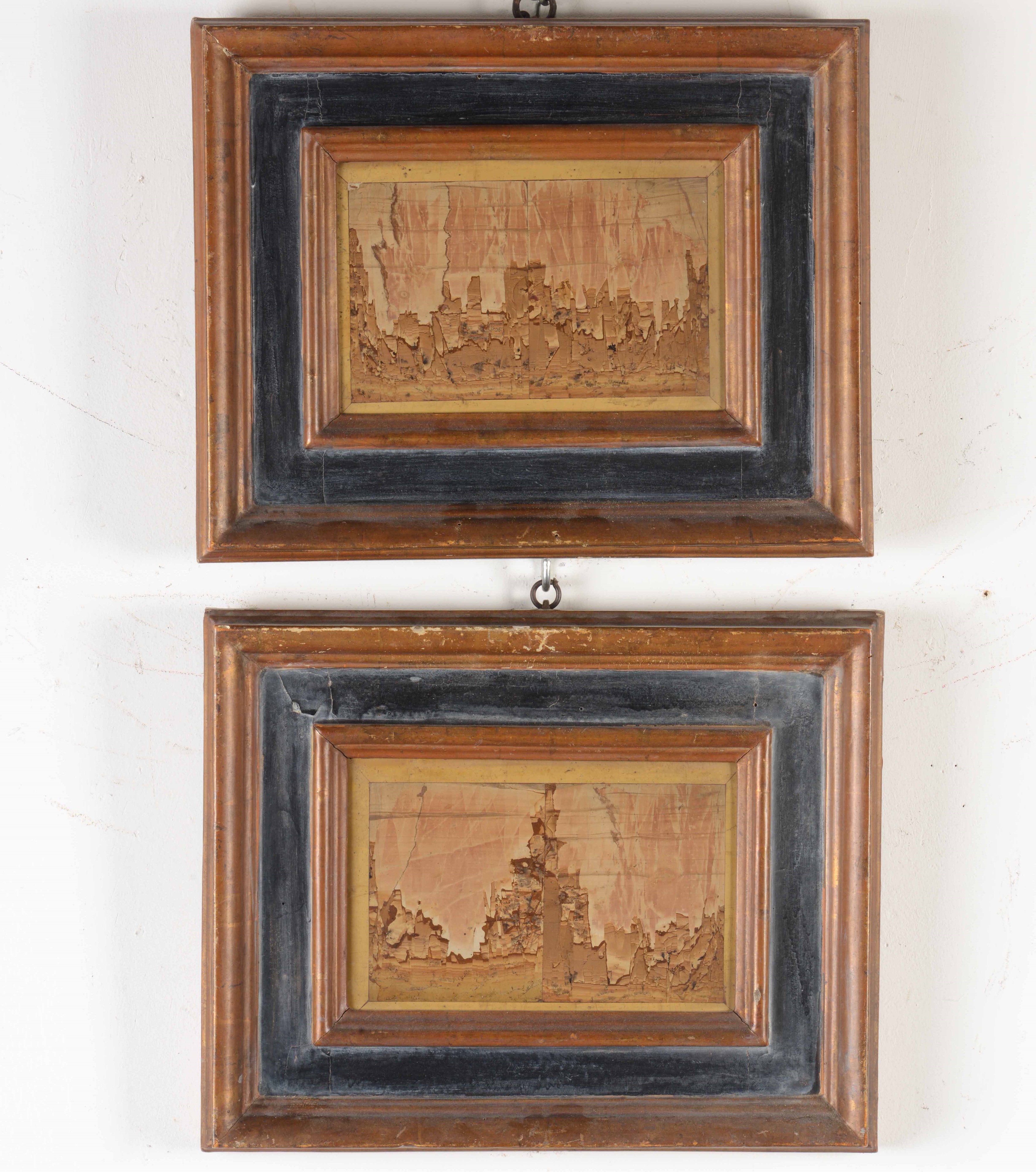 Due pietre paesine in cornici in legno laccato. XVIII secolo