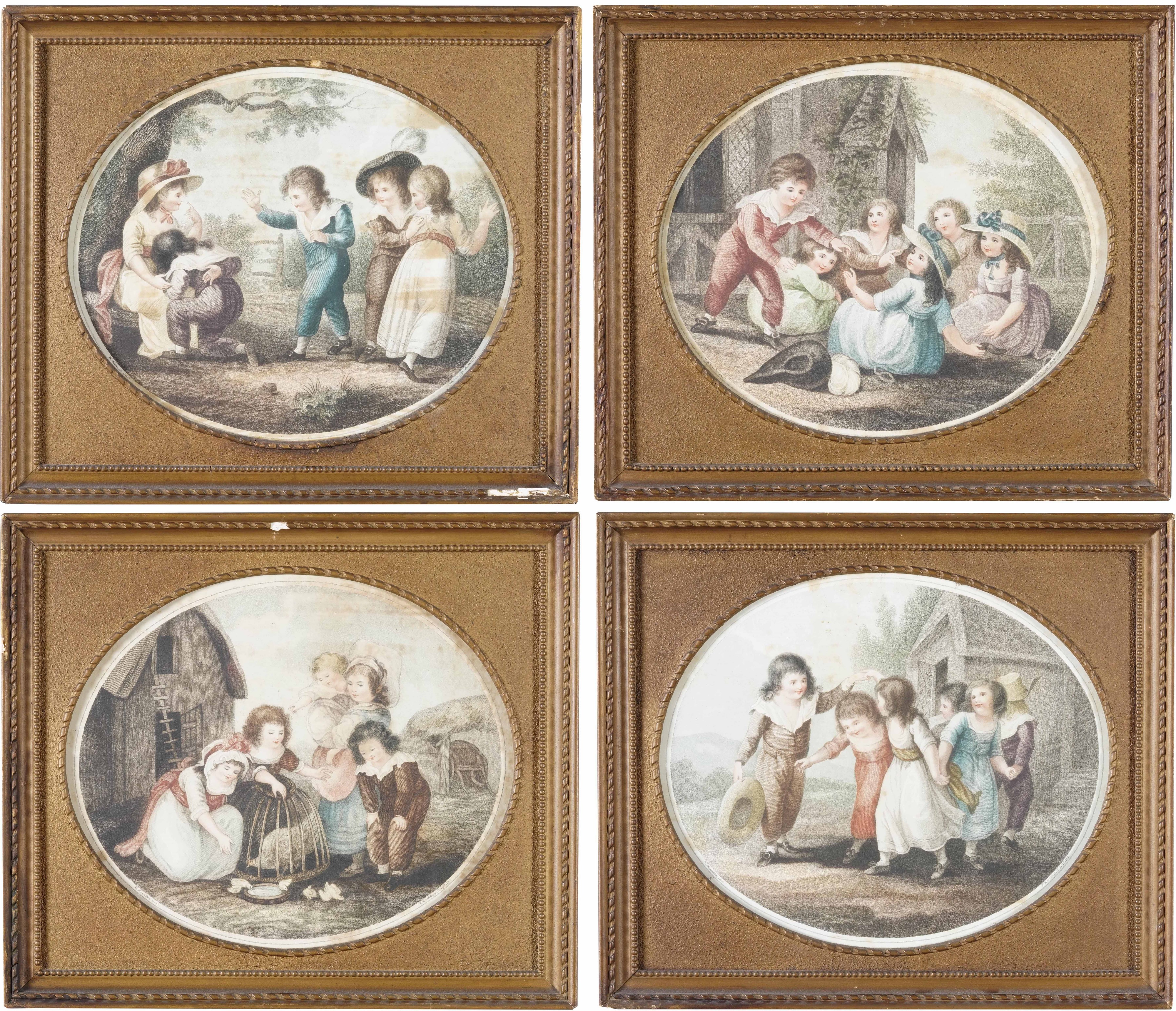Gruppo di quattro incisioni con giochi di fanciulli, XIX secolo
