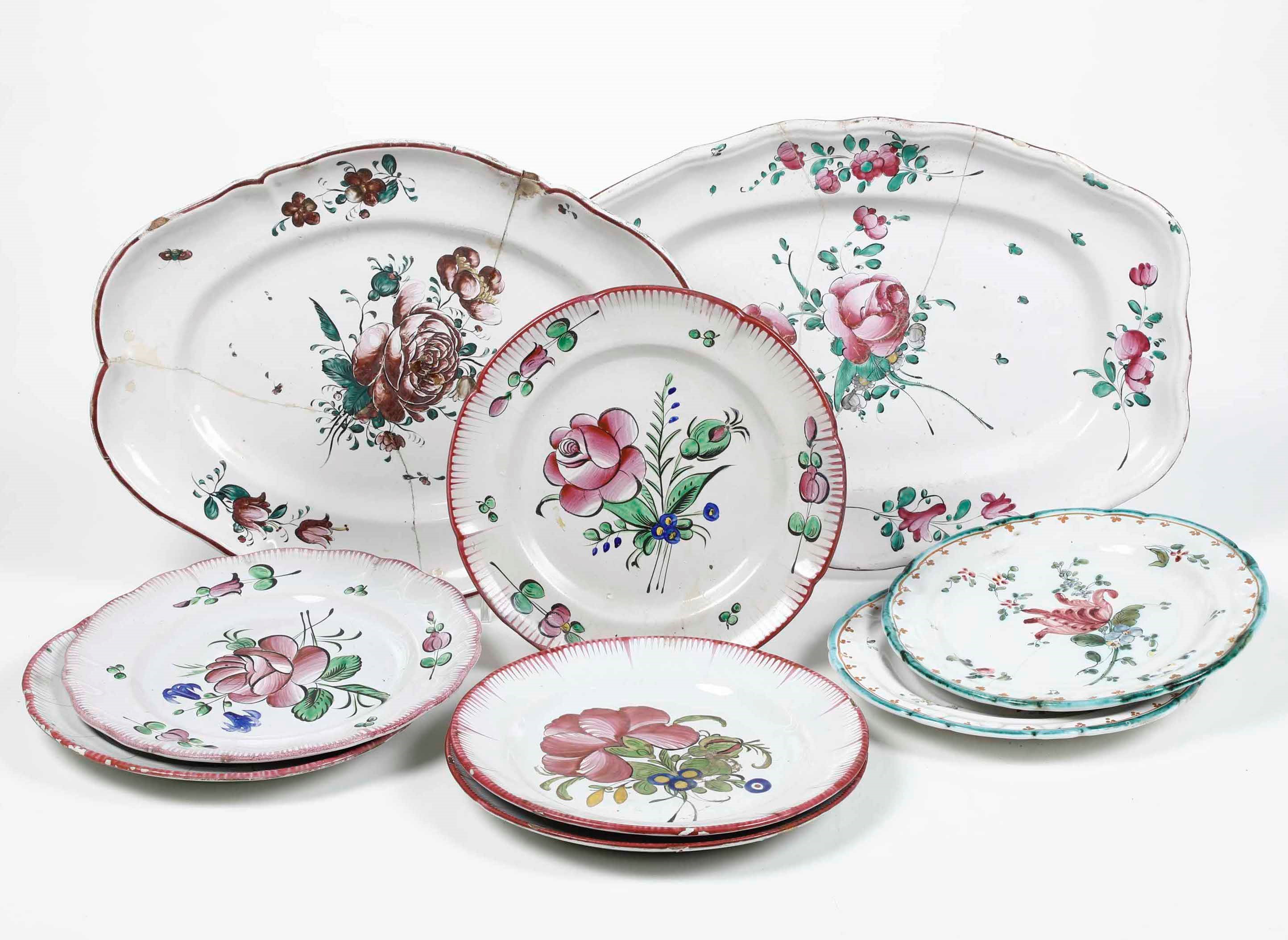 Insieme di piatti in maiolica. Varie epoche e manifatture