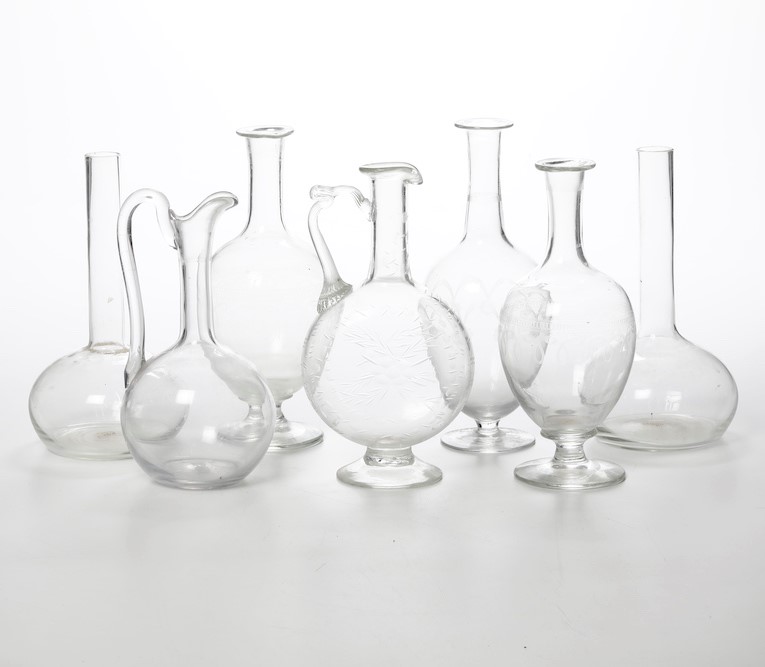 Lotto di sette bottiglie in vetro incolore