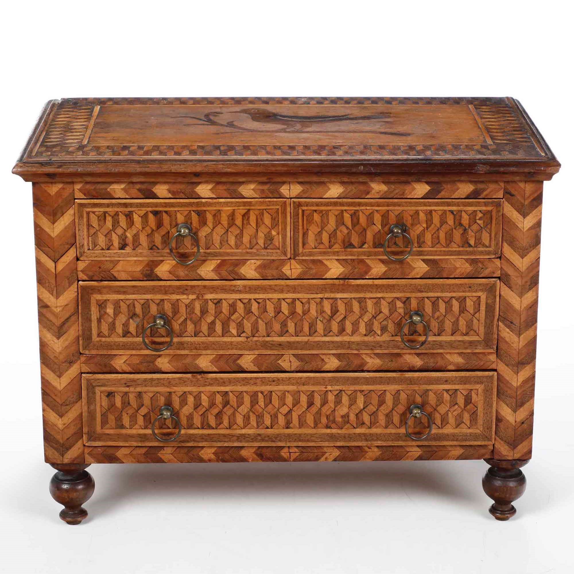 Modellino di cassettone filettato e intarsiato a motivi geometrici. XVIII-XIX se [..]
