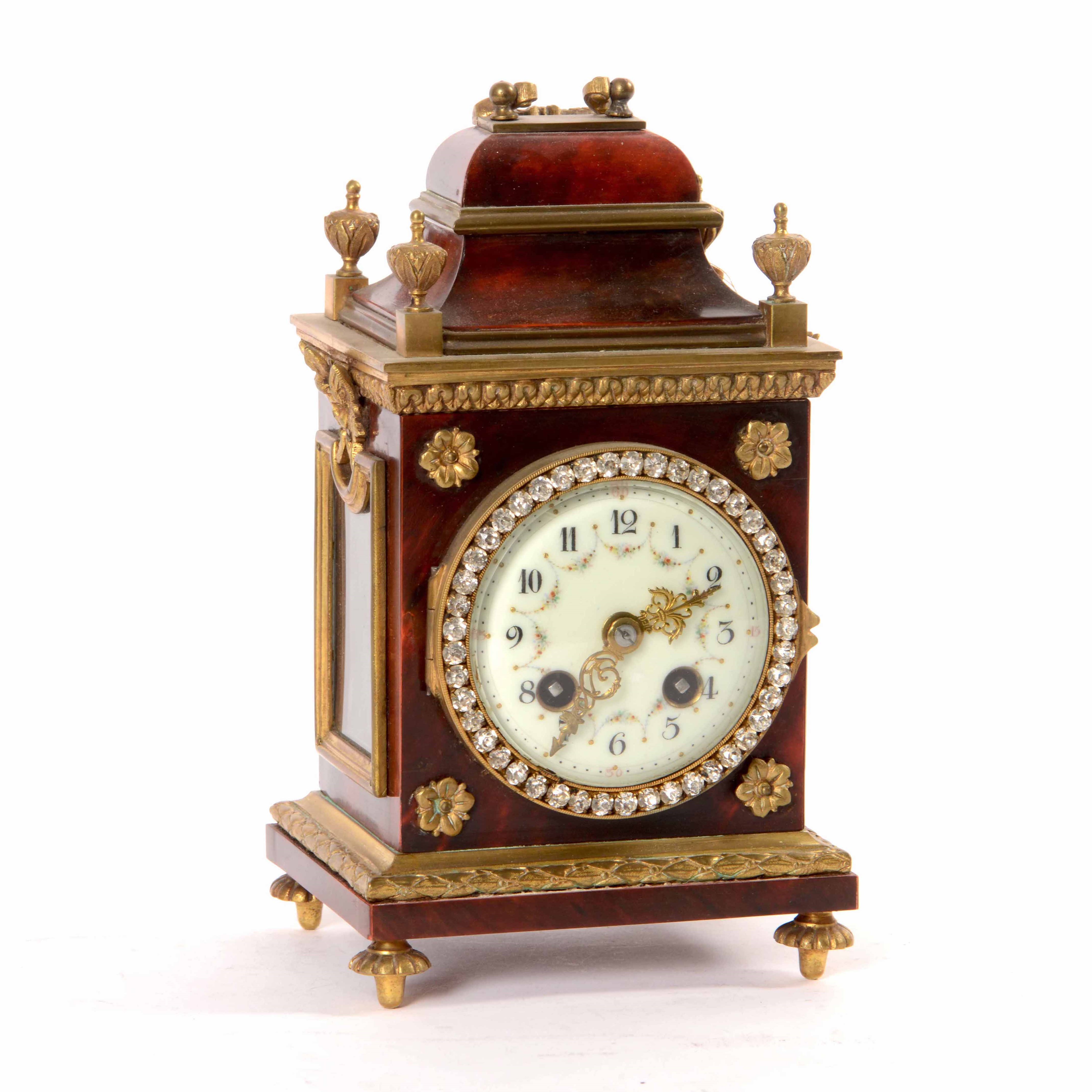 Piccola pendola da tavolo lastronata in tartaruga. XIX-XX secolo
