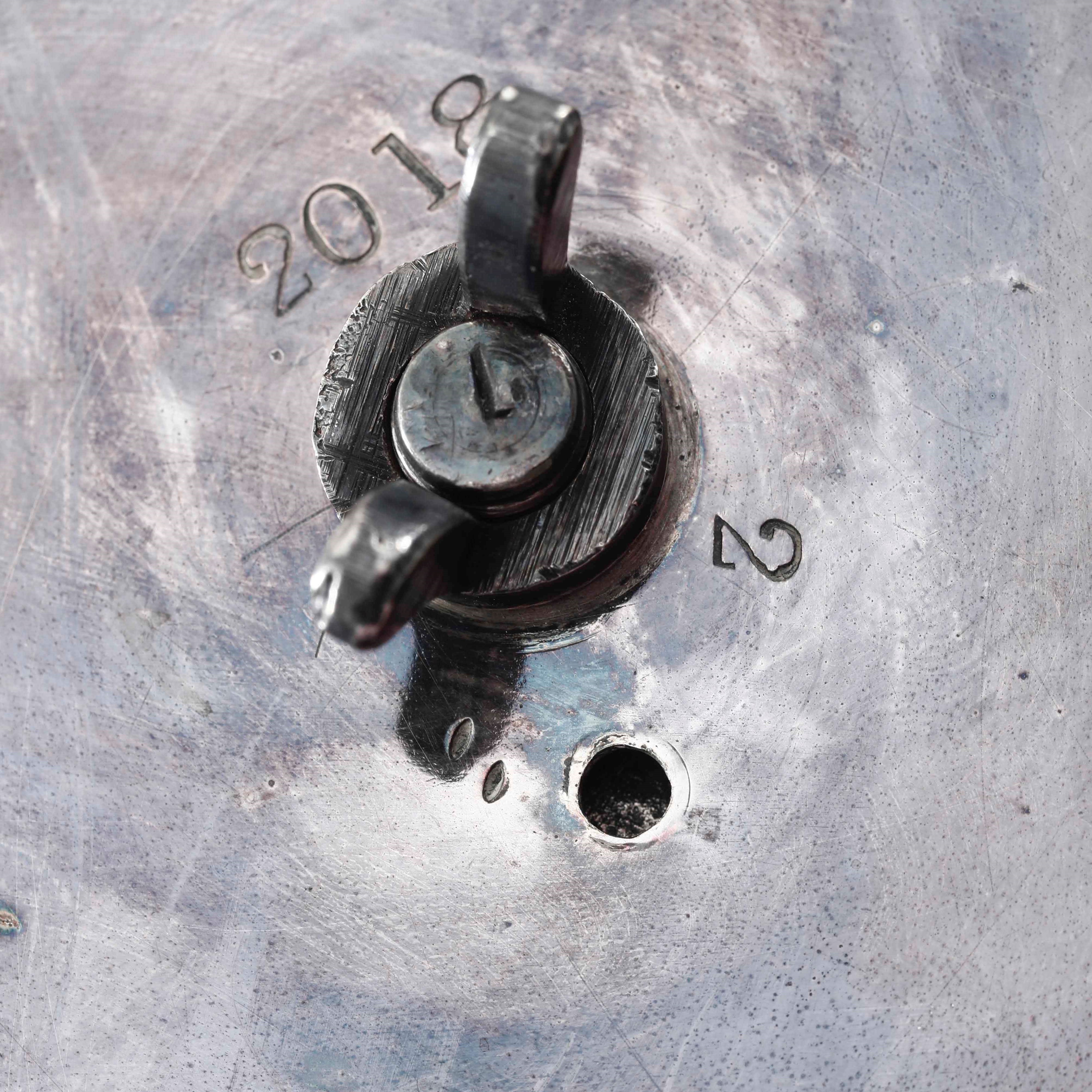 Porta olio e aceto in metallo argentato, boccette in vetro