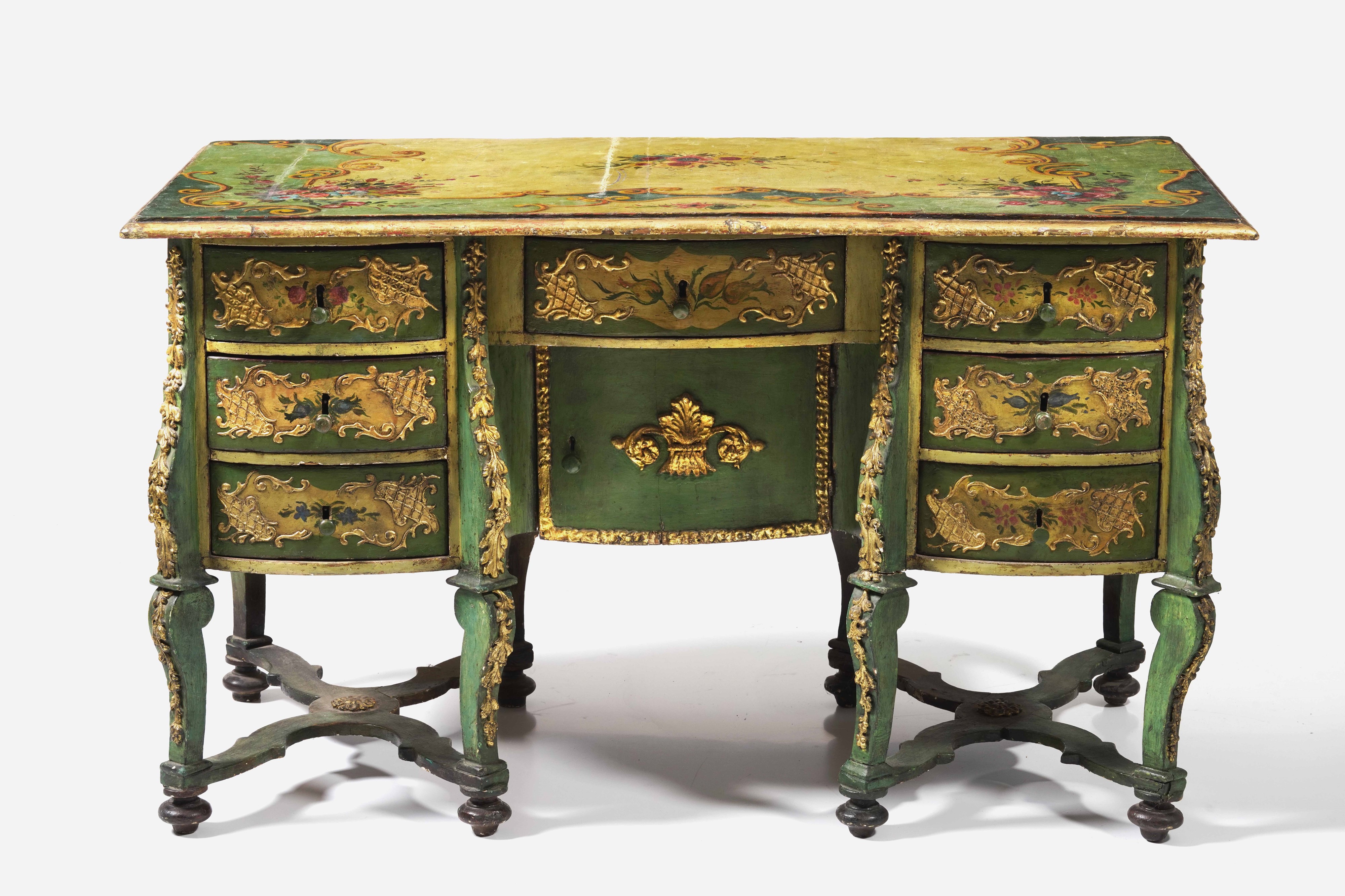 Scrivania mazzarina in legno dipinto. Veneto, XIX secolo