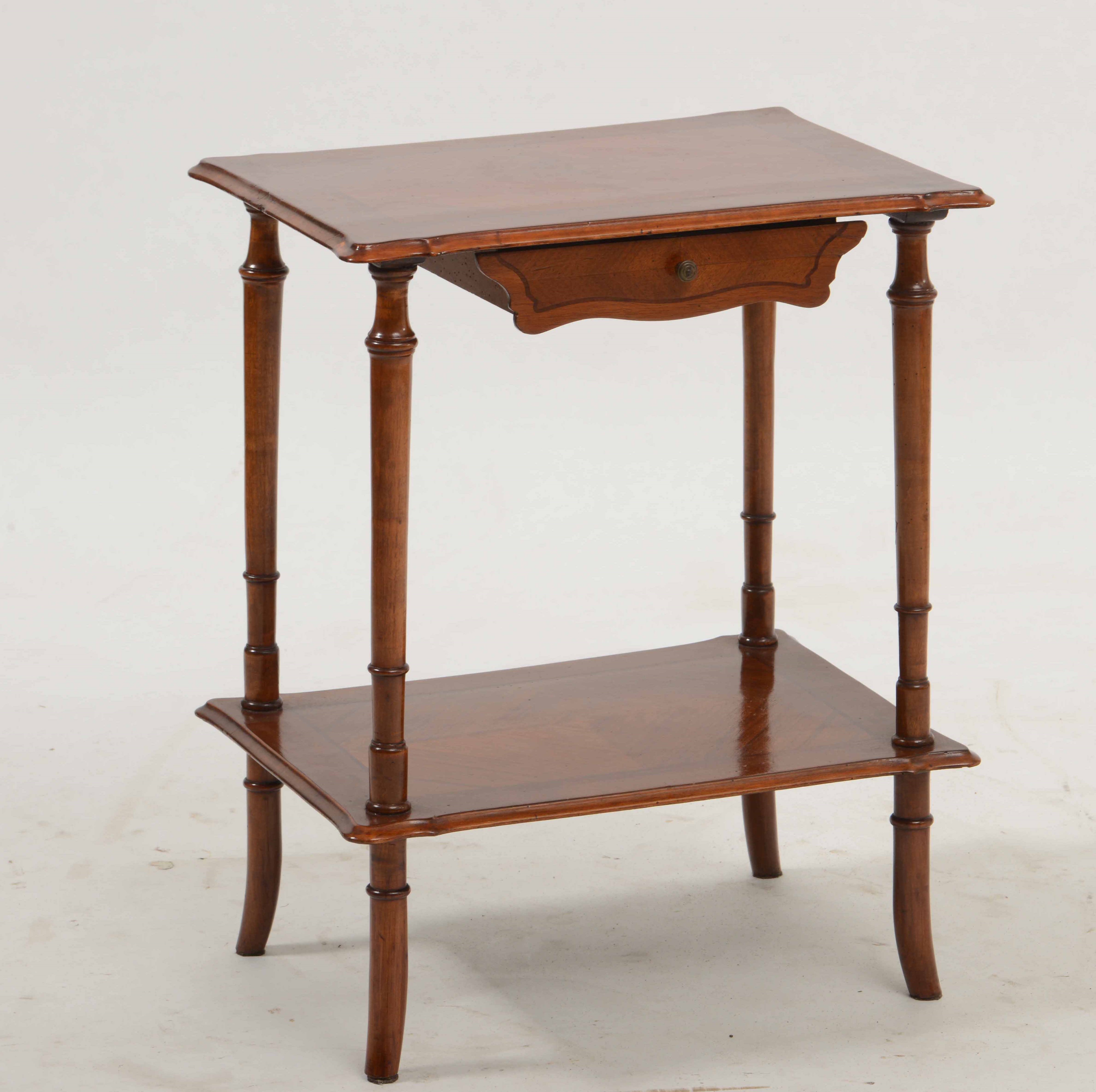 Tavolinetto a due ripiani in noce. XIX-XX secolo