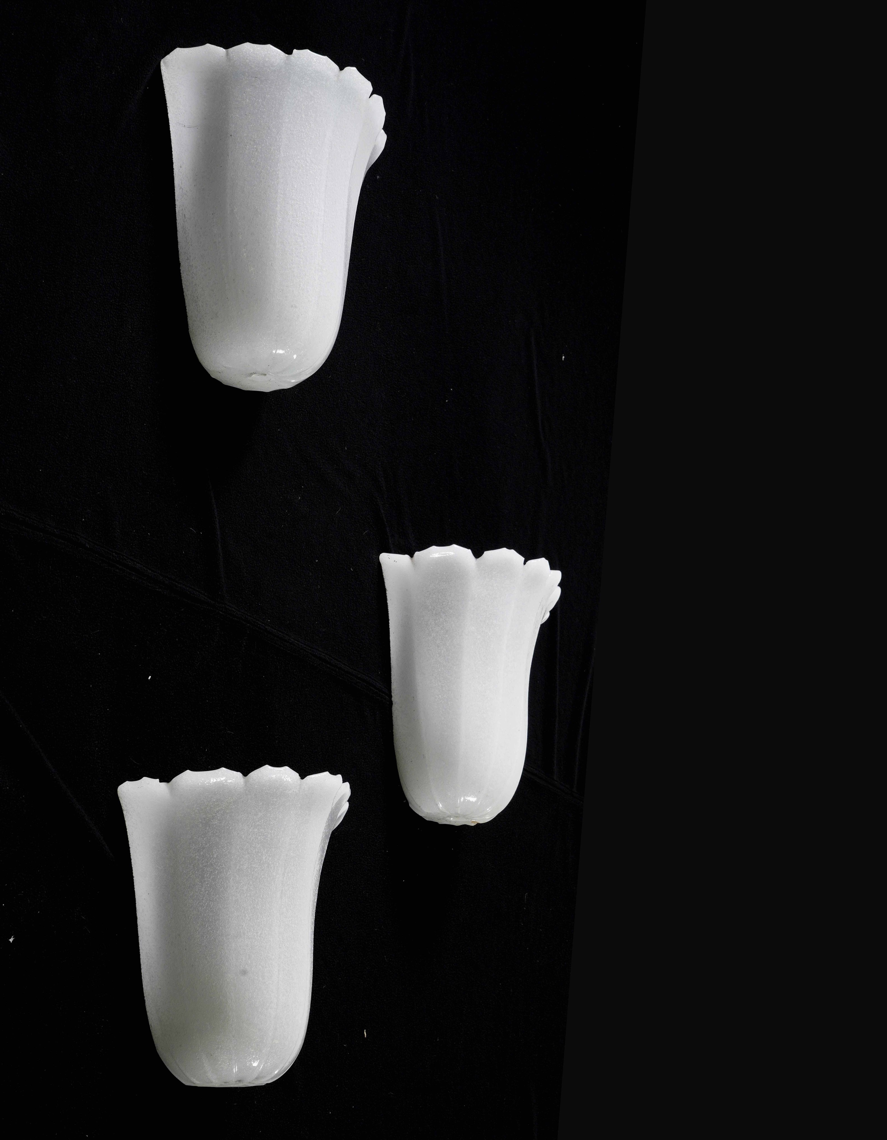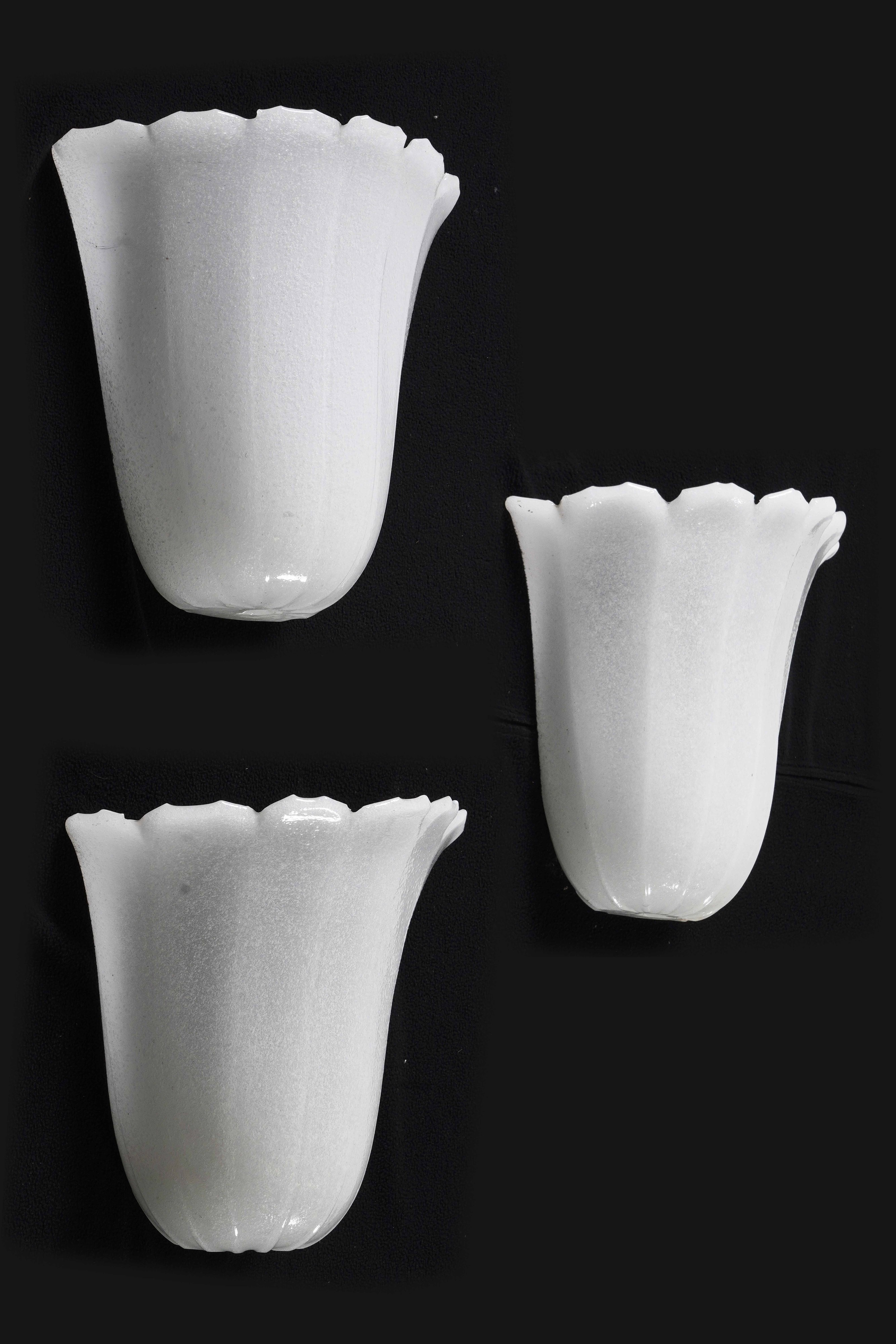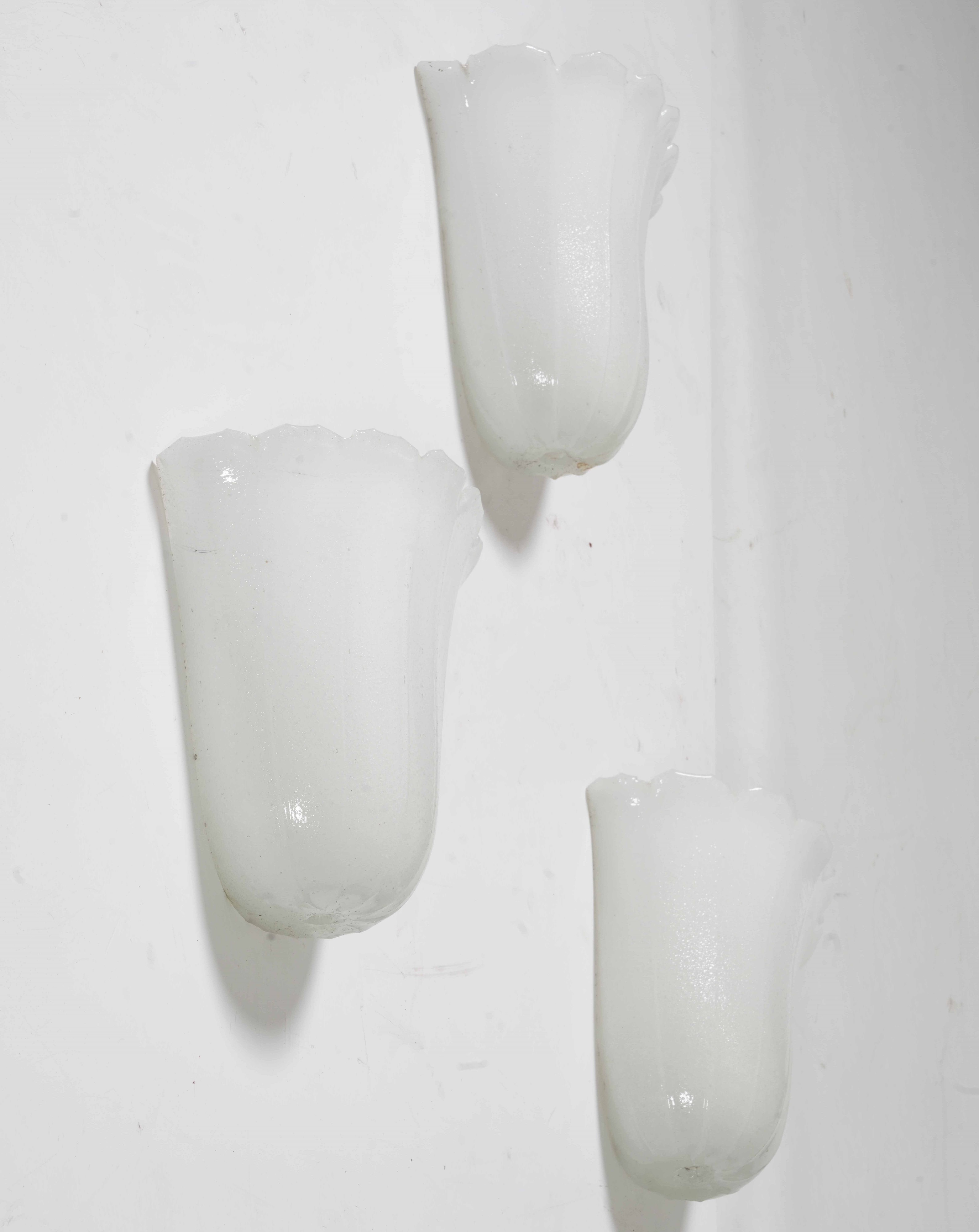 Tre appliques in vetro lattimo. XX secolo