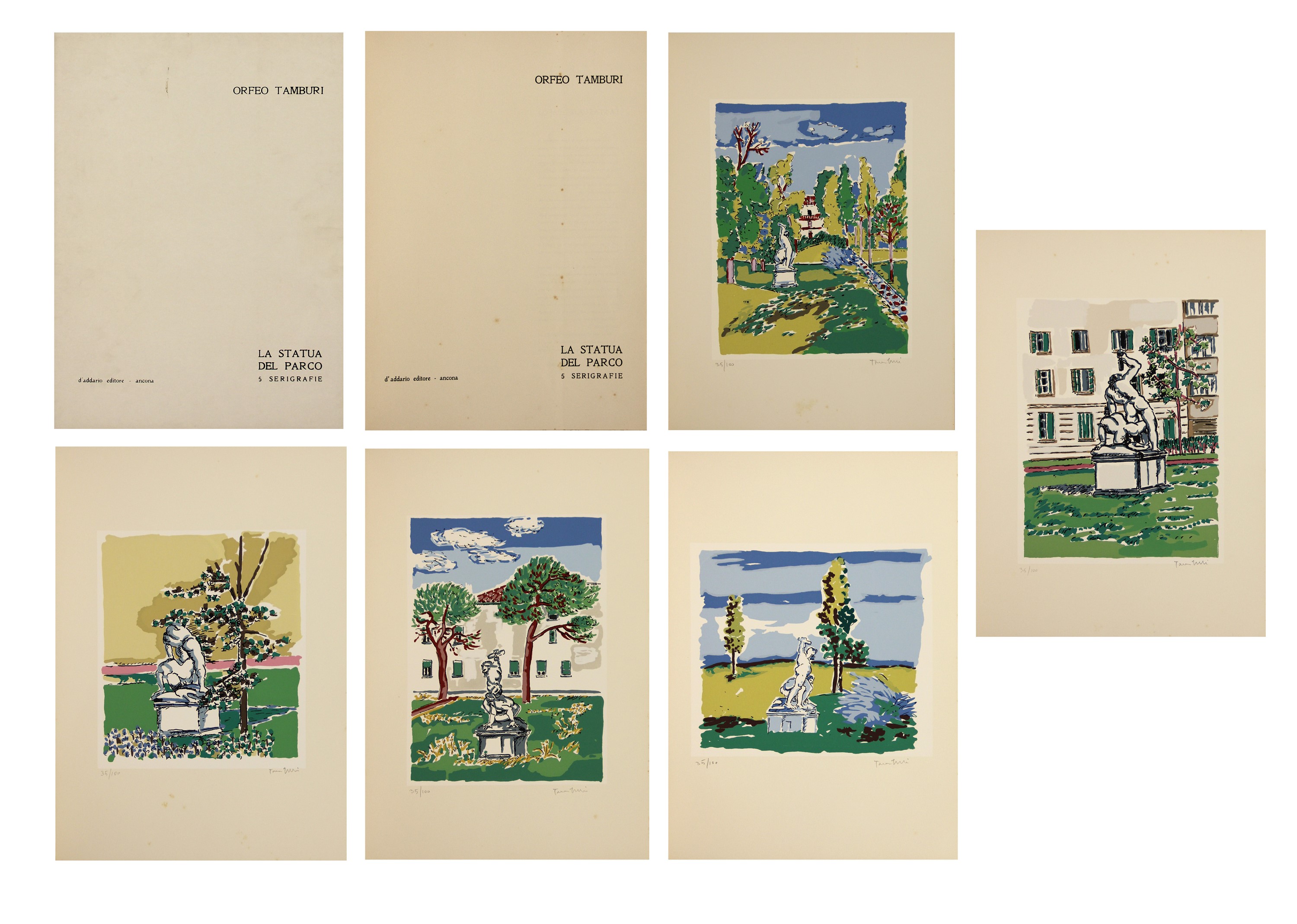 ,Orfeo Tamburi : La statua del parco / cartella di 5 serigrafie  - Asta Arte moderna e contemporanea | Summer season - Associazione Nazionale - Case d'Asta italiane