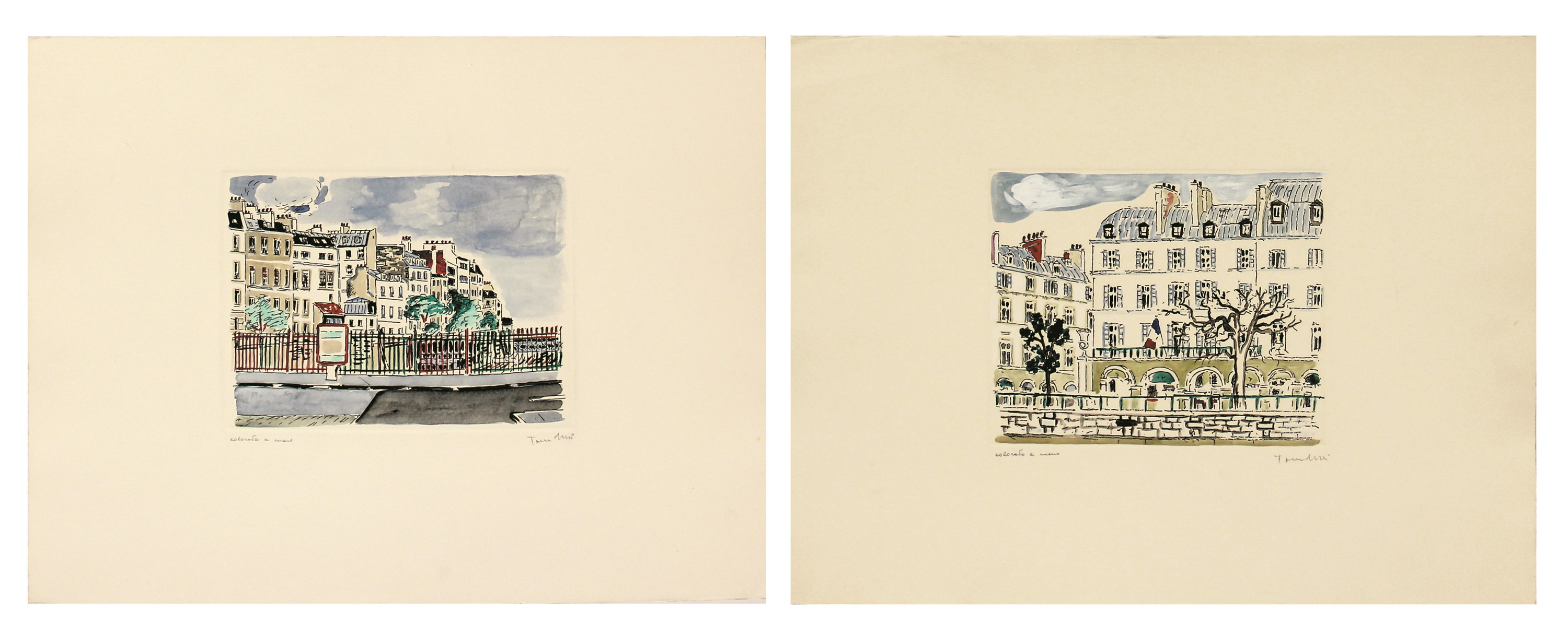 Lotto composto da 2 opereLa parte colorata misura cm. 20,5x27,5Scritta colorata a mano (in basso a sinistra);firma Tamburi (in basso destra)