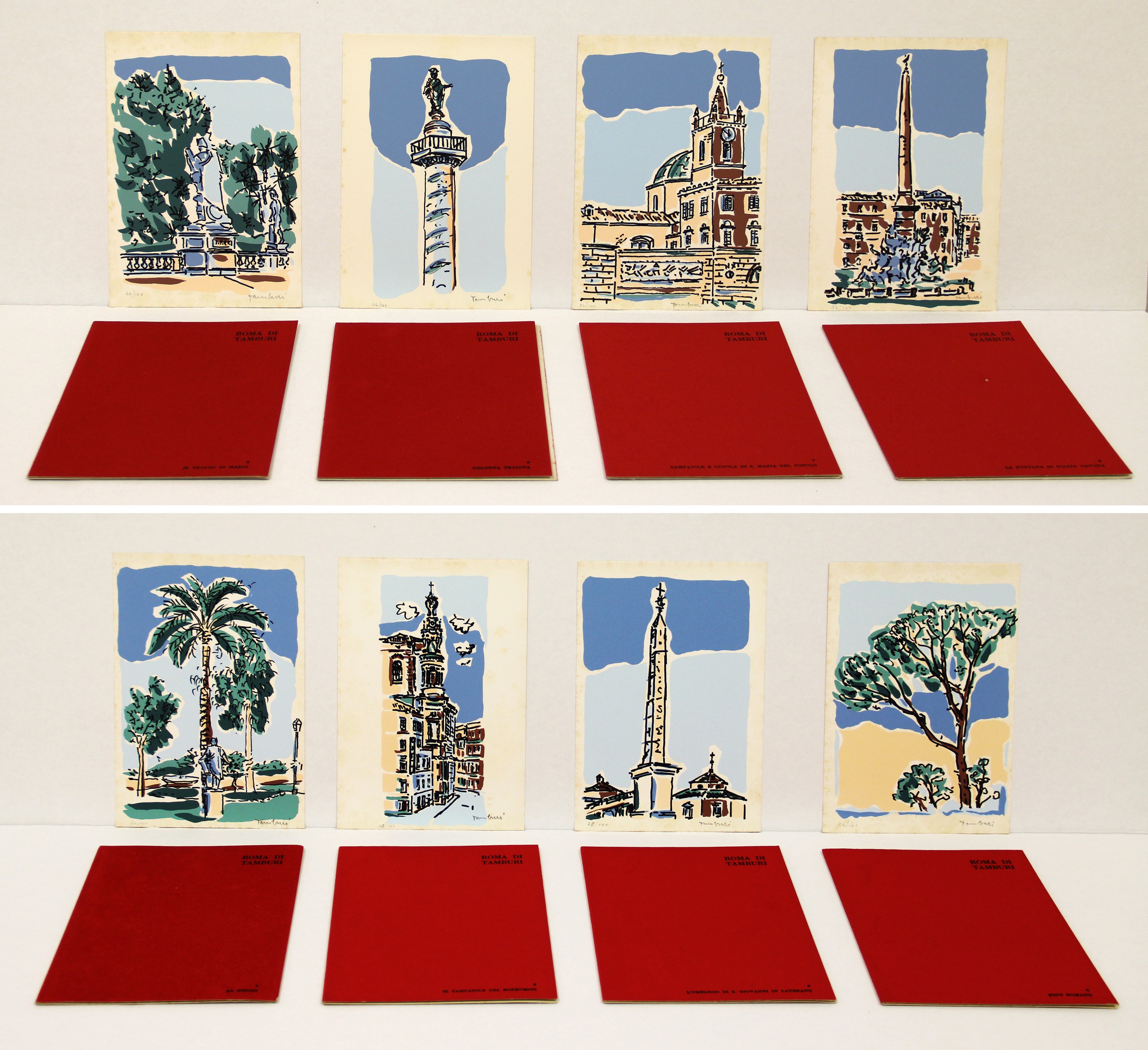 Cartella intera di 8 serigrafie a colori su carta Rosaspina