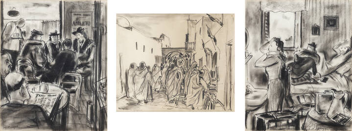 a) 31 5x31 carboncino su carta. Opera firmata in basso a sinistra b) 37 5x28 tecnica mista su carta incollata su passepartout. Opera firmata in basso a sinistra c) 37 5x31 tecnica mista su carta incollata su passepartout. Opera firmata in basso a destra