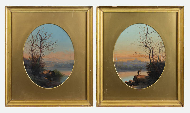 Dipinti ovali cm 25 5x20 5 su tavole 34x25 Opere siglate E.R. in basso al centro una datata 1888