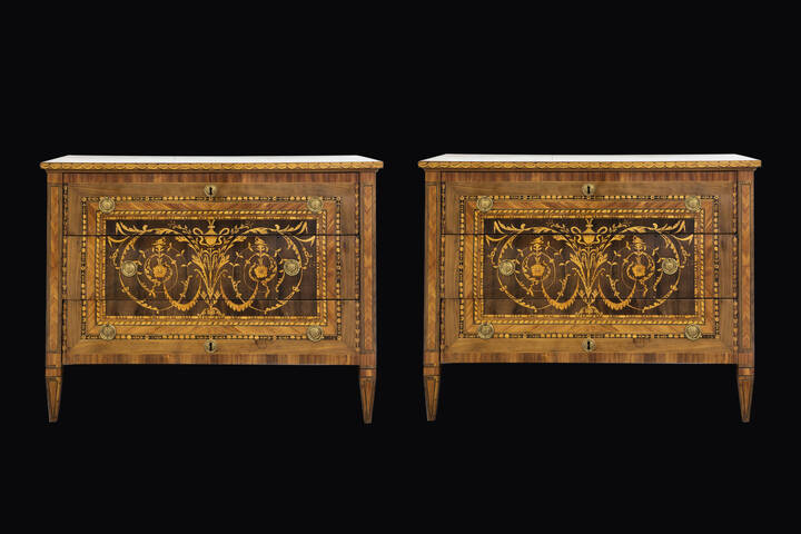 H. cm 101x131x58 In legno di noce probabilmente Piacenza XVIII secolo intarsiati [..]