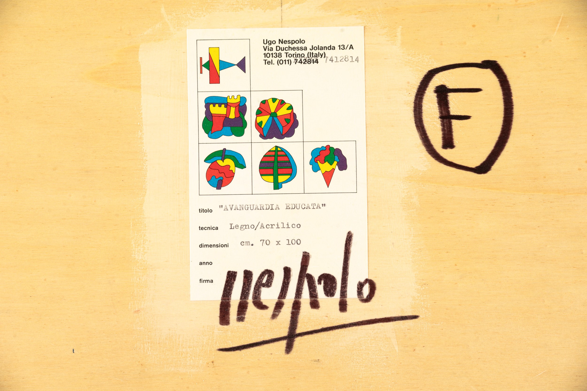 Etichetta al retro dell'artista