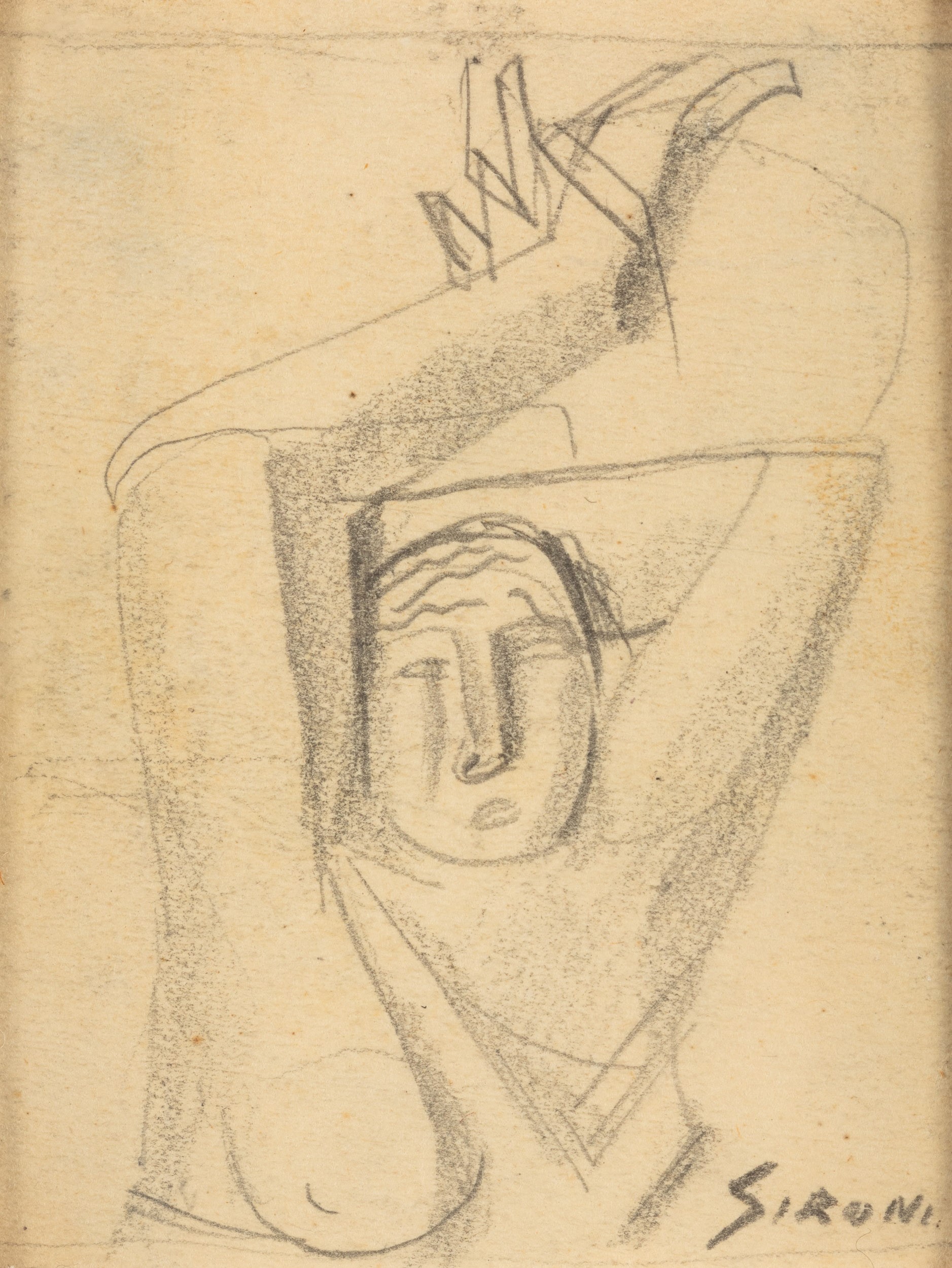 Matita su carta applicata su tela, Largh. 6,7 - Alt. 8,7 Cm