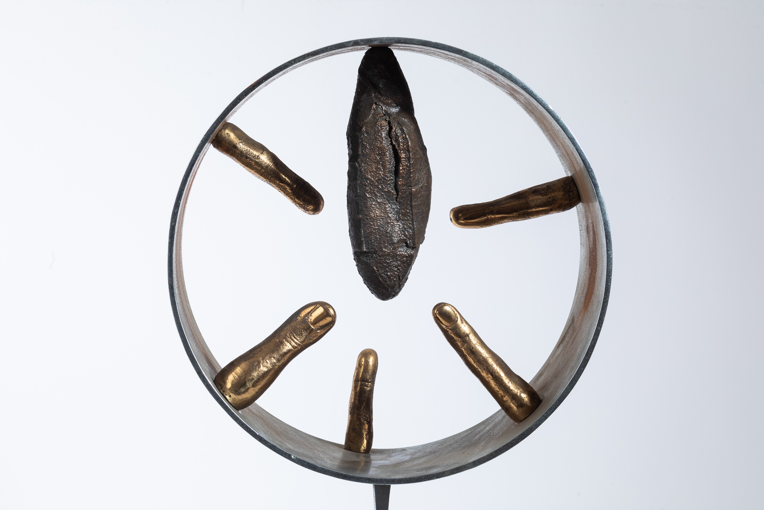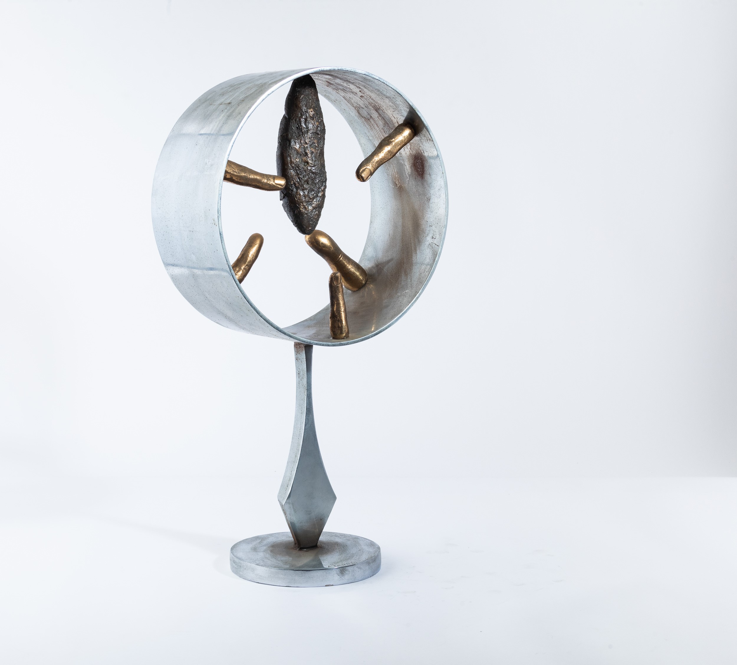 bronzo e ferro cromato, Largh. 16 - Prof. 16 - Alt. 60 Cm