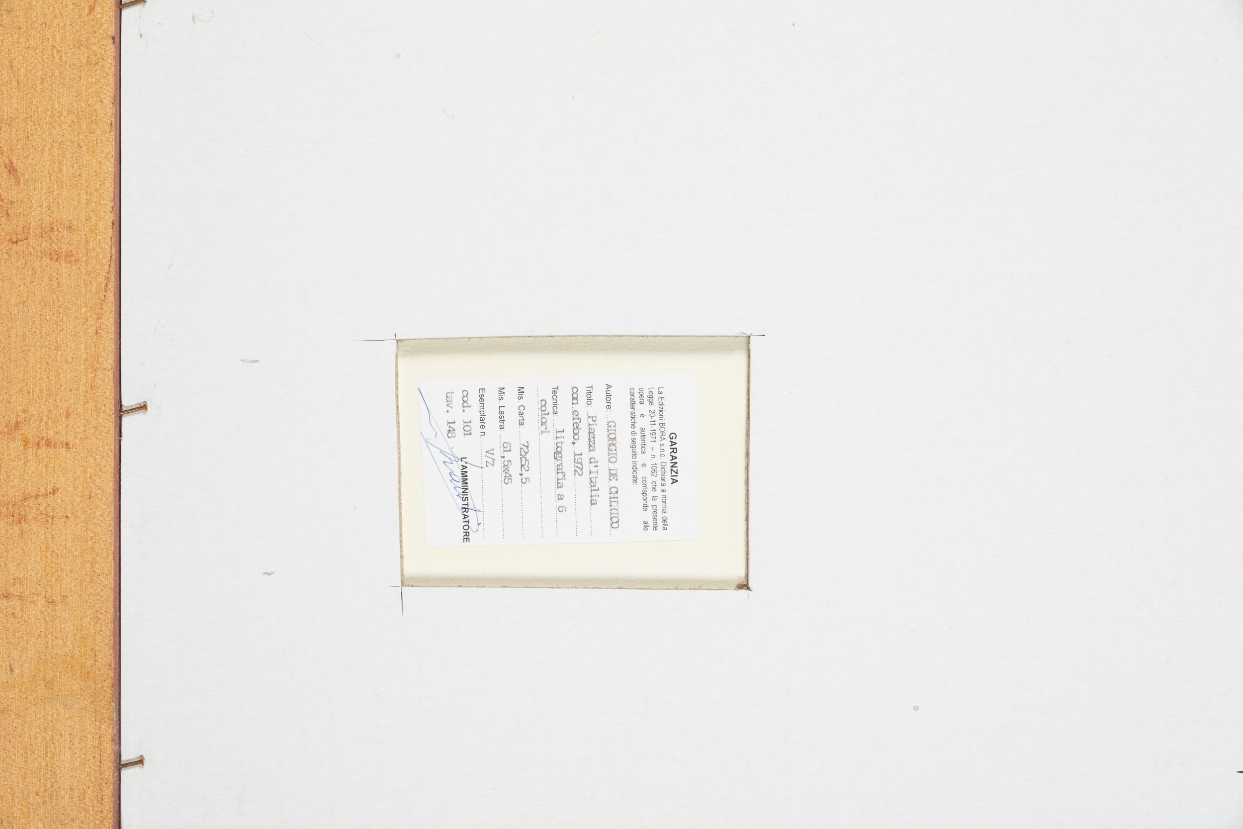 Firmata in basso a destra, numerata in basso a sinistra e intitolata in basso al centro