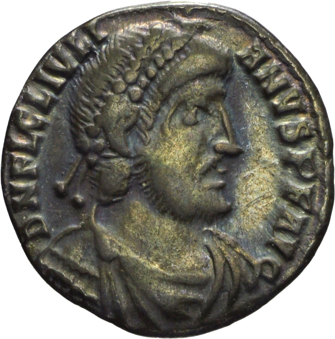 D/ D N FL CL IVLIANVS P F AVG, busto diademato e drappeggiato a destra, R/ VOT X MVLT XX, PCONST, all'interno di una corona di foglie di quercia, Zecca di Arelate, Rif. bibl. R.I.C., 312/R2; Cohen, 148; Metallo: AR, gr. 1,72, Diam.: mm. 16,68. BB