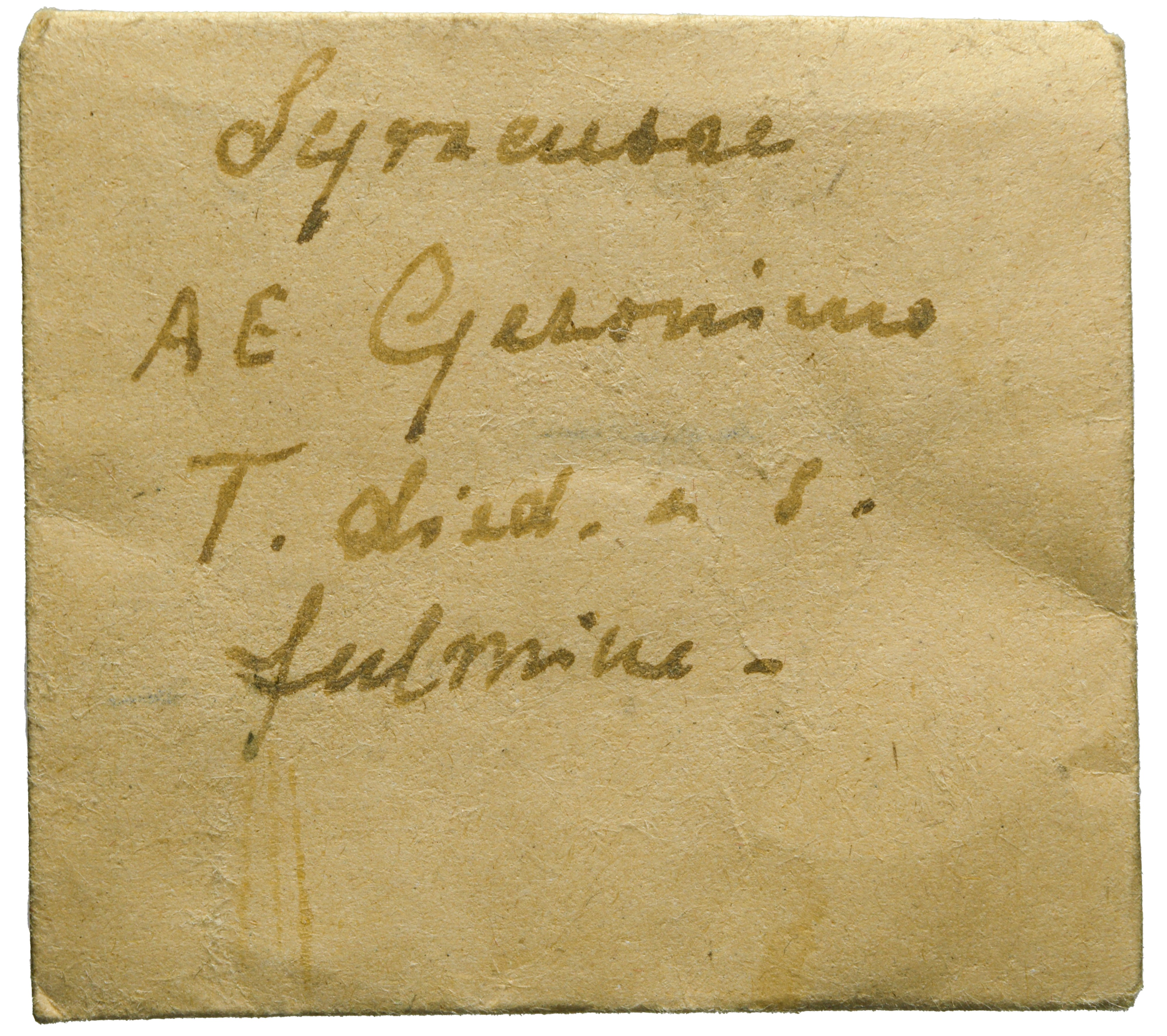 D/ testa giovanile di Geronimo a sinistra, R/ fulmine alato orizzontale, Zecca di Siracusa, Rif. bibl. Cfr. Buceti, 1582; Metallo: AE, gr. 8.89, Diam.: mm. 23,74. BB
