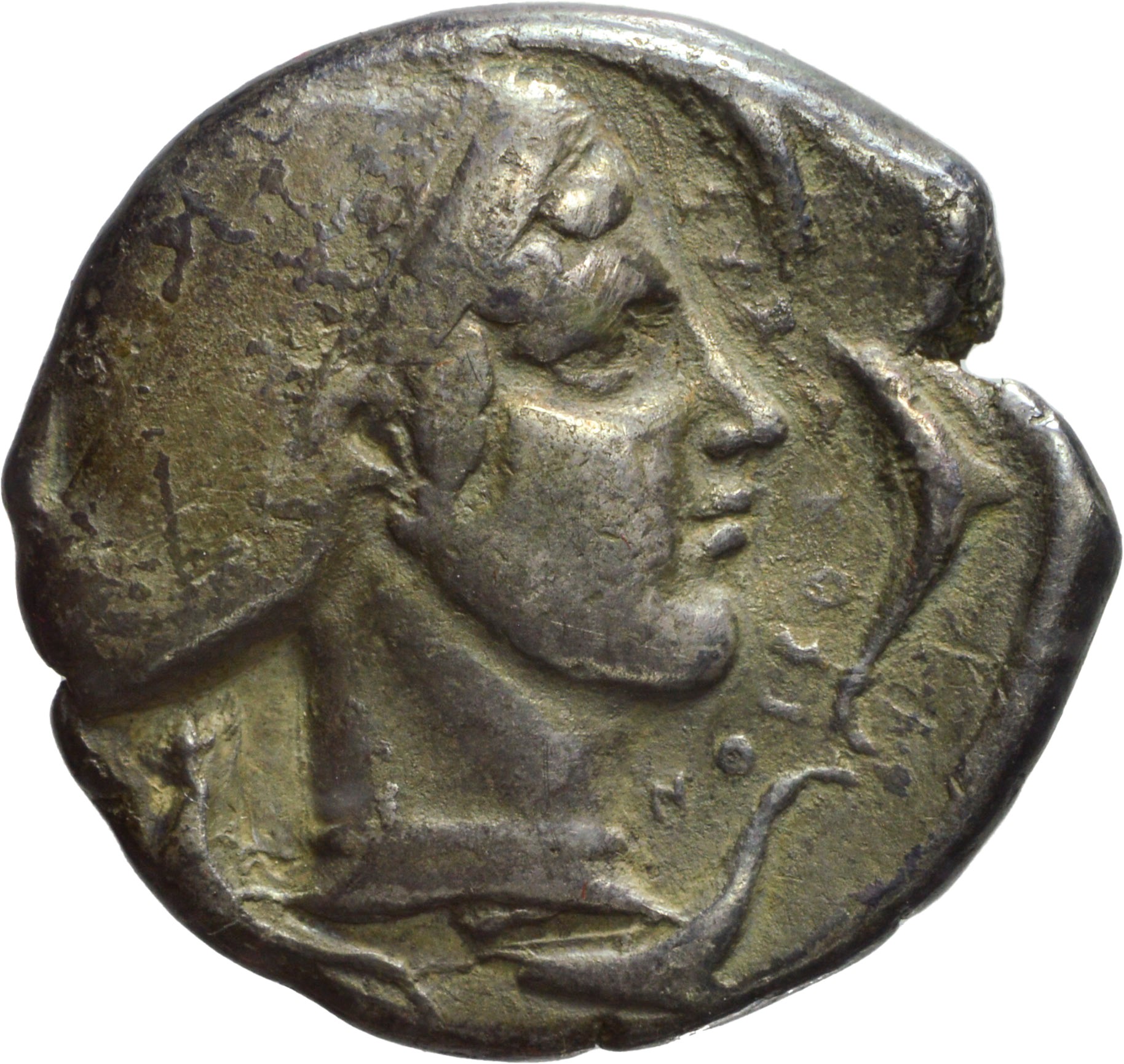D/ auriga a destra, R/ testa di Aretusa a destra, intorno quattro delfini, Zecca di Siracusa, Rif. Buceti 294/R; Metallo: AR, gr. 16,83, Diam.: mm. 26,51. qBB