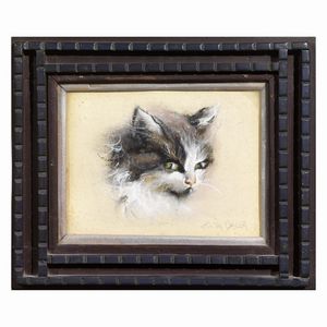 FELICE CARENA (Cumiana 1879 - Venezia 1966) Volto tecnica mista su carta pesante intelata (pastelli colorati) [..]