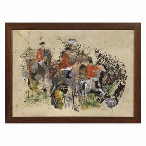 GIUSEPPE ORSINI Caccia alla volpe 1960 tecnica mista su carta cm 34x48 firmato e datato in basso a destra